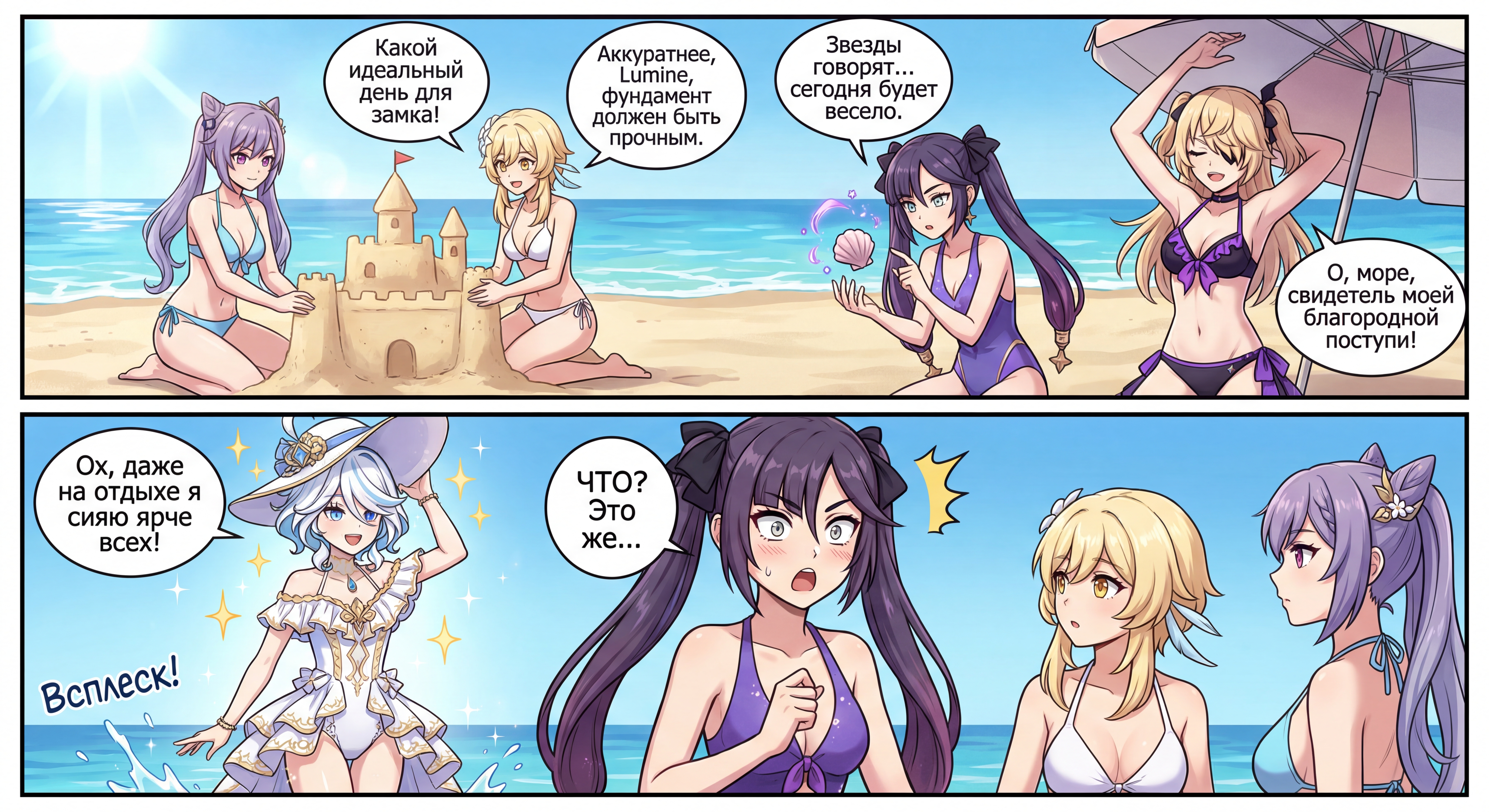 Да и вообще, с Рери сражались волею жирного Сяо залетные фавониусы и черт-из-табакерки гг с Даунсливом. Предварительно еще одна залетная Арлекино дала силу лунной призмы своей подружке, сюжет так сюжет.
