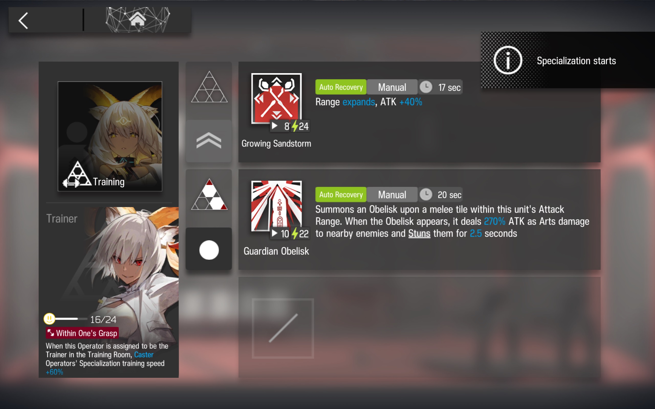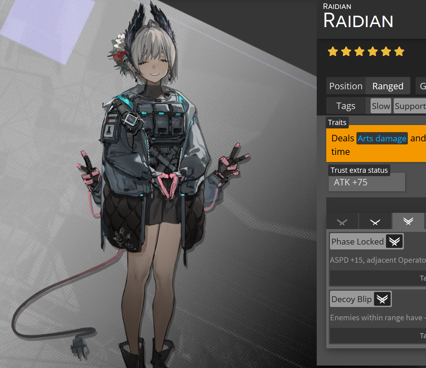 Вот бы ещё её Kazimierz Legal Expertise [Elite PHASE_2] распространялась не на одну казимиер-коллегу, а на весь табун, как у abysas lhunters. Но, к сожалению... > ASPD +10; the same buff is given to a random [Kazimierz] Operator when deployed
