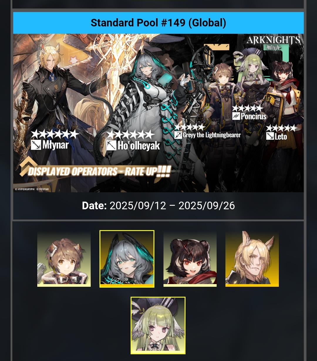 Также начиная с этого баннера, следующие оперативники будут убраны из пула оперативников, доступных в стандартных баннерах и переведены в кернел баннеры: 6★: Mizuki / Saileach / Fartooth / Flametail / Gnosis 5★: La Pluma / Mulberry / Ashlock / Corroserum / Aurora