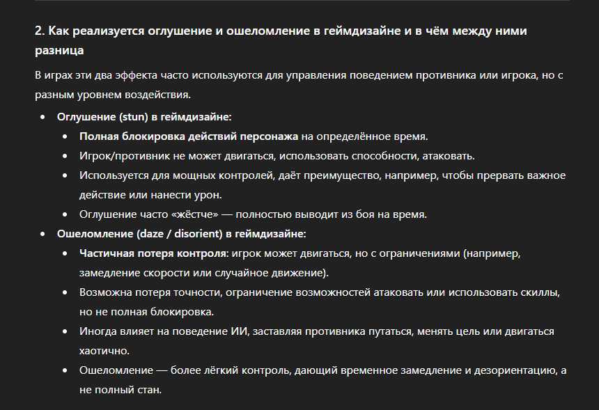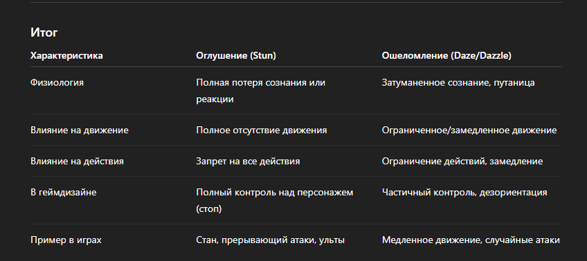 >>6043128 Можешь, пожалуйста, вчитываться в то, что тебе пишет нейросеть? Спроси у неё прямо: "какое физиологическое воздействие оглушения и ошеломления на человека" или "как реализуется оглушение и ошеломление в геймдизайне и какая между ними разница"