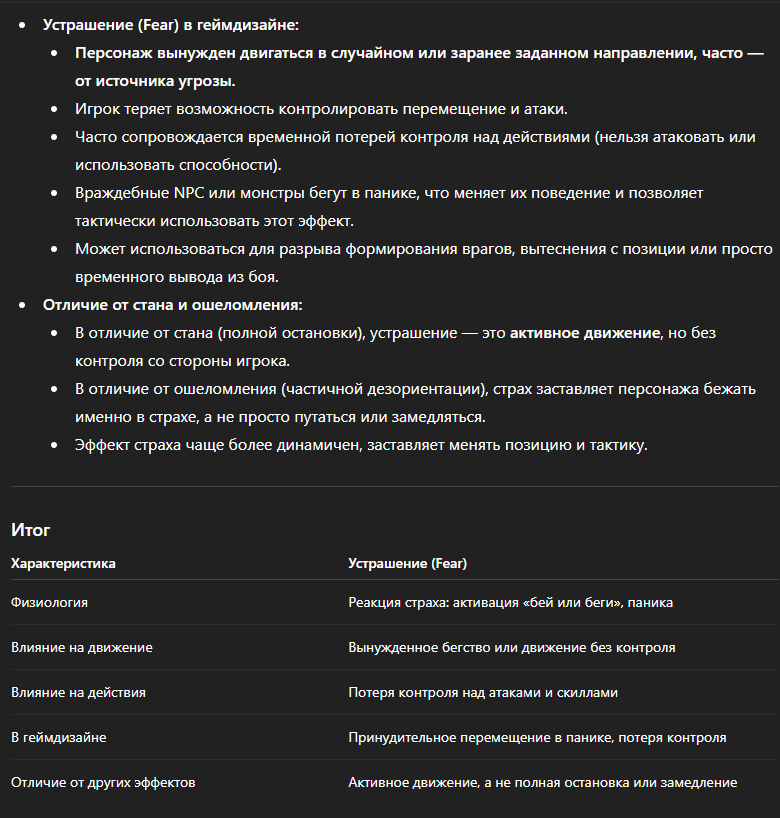 Устрашение (Fear) — это прямой эффект контроля, который заставляет цель бежать в панике, полностью лишая её возможности управлять собой.