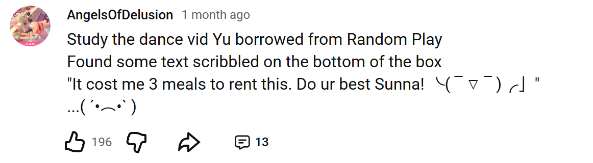Потом 👩 Ю сказала мне, что у настоящих официальных групп обычно есть свои хэштеги/названия фандома. Ю говорит: "Если мы хотим выглядеть профессионально, нам тоже нужно придумать свой хэштег." (Это имеет смысл... но мне ничего не приходит в голову... Вздох)