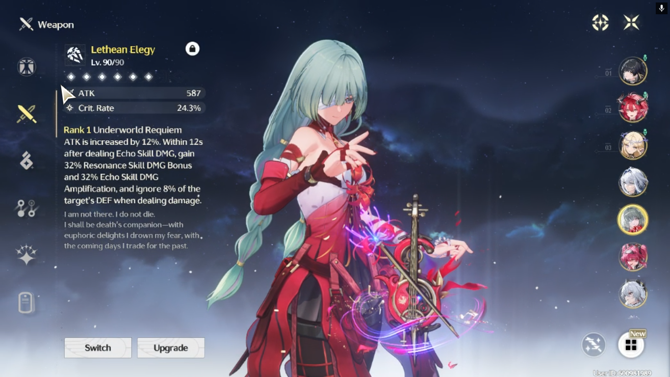 Лазерный рассекатель: Атака увеличена на 12%. После нанесения урона врагу в состоянии [Вмешательство гармонии], бонус к урону от навыка Резонанса увеличивается на 24% в течение 3 секунд. Повторные срабатывания обновляют длительность.