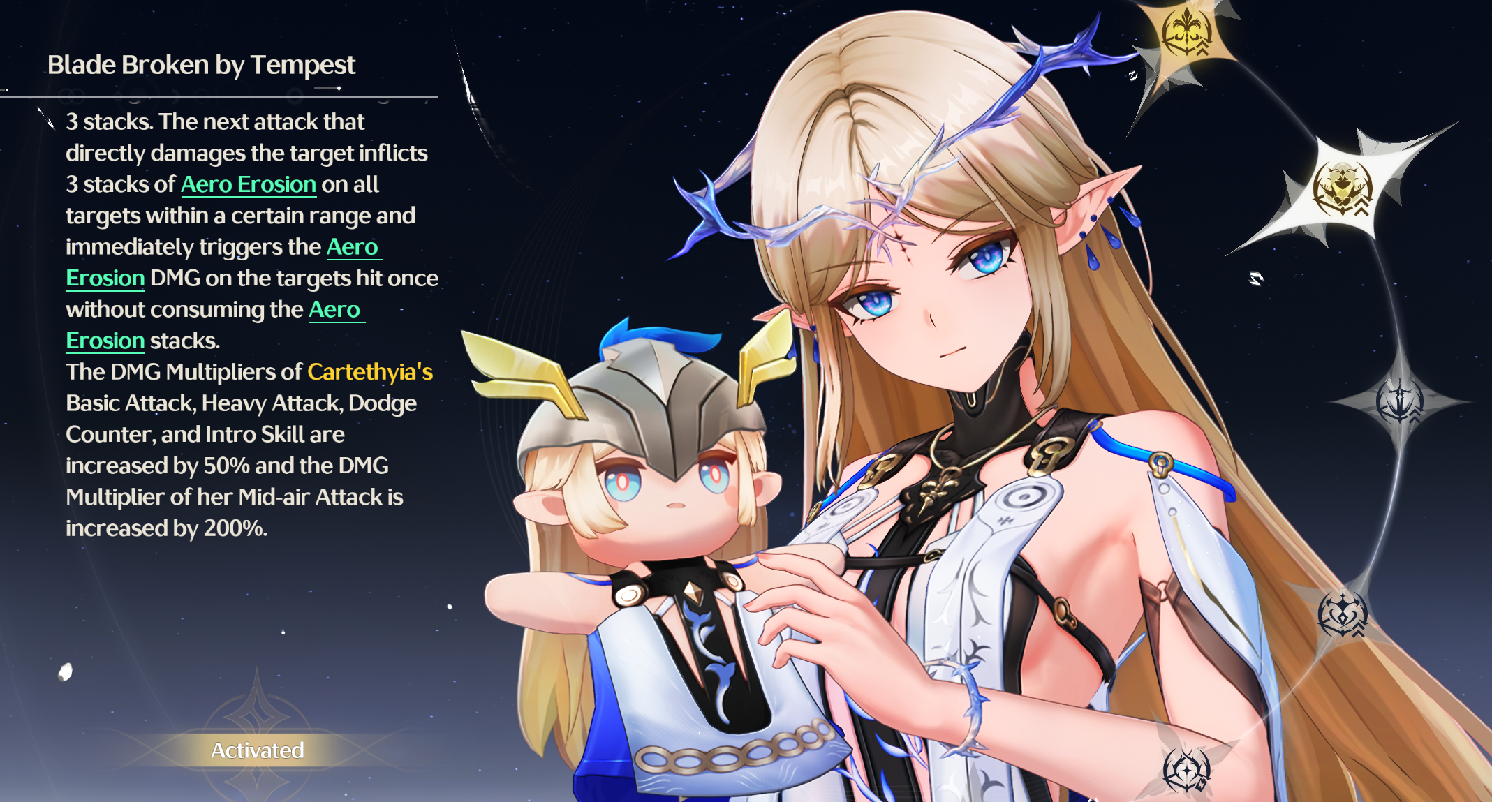На хакушине, кстати помимо прочего групо накидали разделы тюнбрейка персонажам, но пока у большинства не готов. У Линэ, если не настрочили просто на отъебись временно, тюнбрейк до 1880% дамажит в момент активации, что весьма увесистая плюха, в районе 250к прилетать должно. Плюс там пассивный бафф во ввремя набора