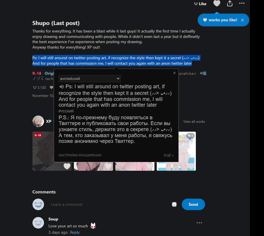 Да пока Писевор к 4.0 разродится русиком, это уже будет неактуально. Перевод идеально было к 3.0 выпустит, чтобы перекрыть новые релизы или к коллабу на хайпе.