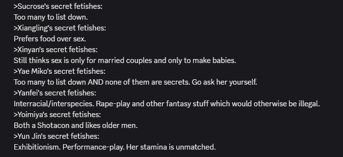 >>6046465 >почему в вуве разбирают романтические отношения персонажей, а в геншине я максимум что видел это список сексуальных фетишей персонажей? Потому что в Геншине нет романтики. Совсем. Девок много, а юшки нам кидали только Ситлали, Мидзуки и немного Аяка. Всё. Со всеми остальными - крепкий дружбинг. Я не сомневаюсь, что какая-то часть из них стала бы встречаться с ГГ или просто дала, но это даже не домыслы и интерпретации, а откровенный фанфикшн. Материалов для обсуждения и поводов для таких тейков сама игра не даёт.