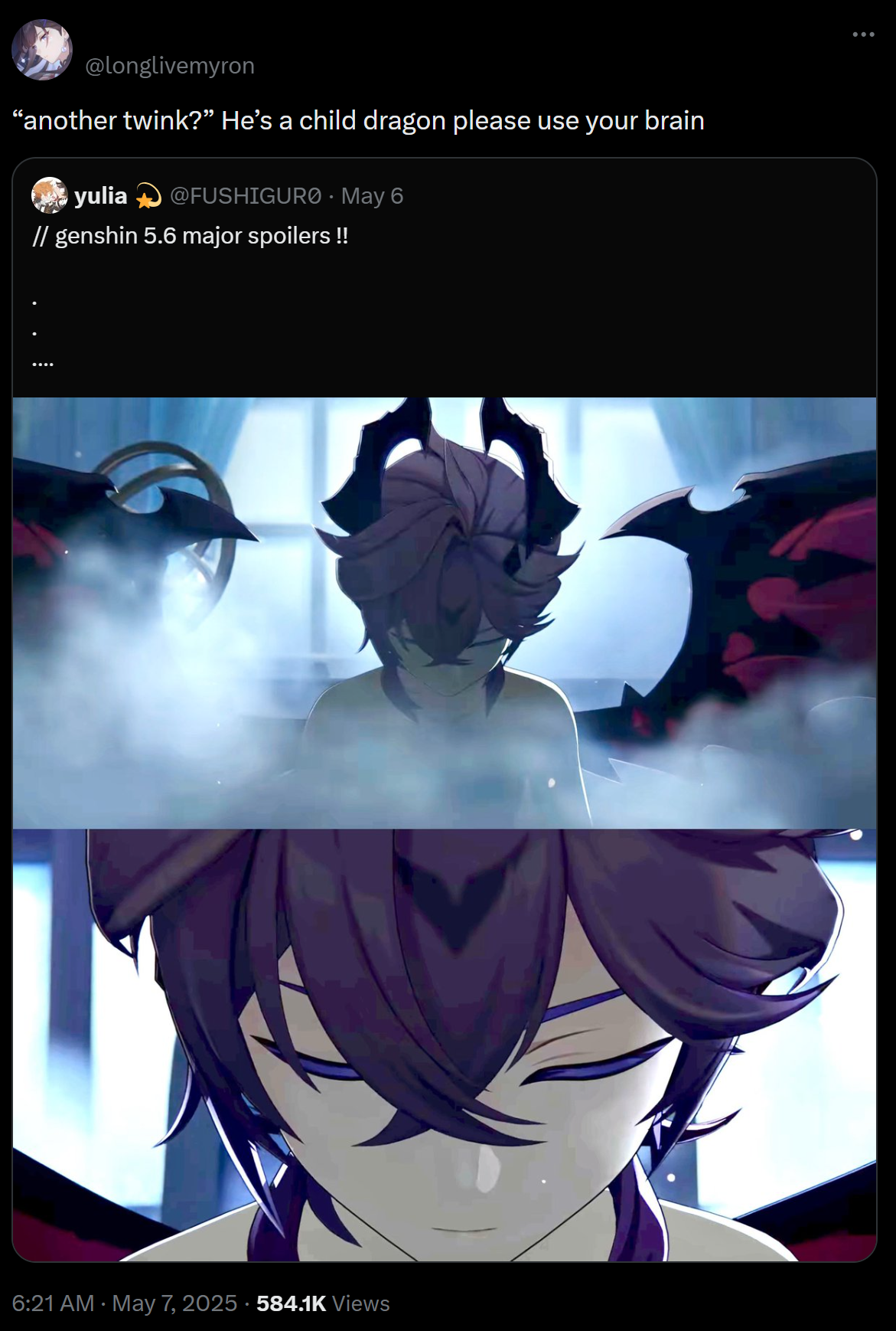 А всё дело в том, что Ляо просто ПО-Е-БАТЬ. Он будет делать ровно то, что хочет, не особо смотря на отклик, потому что гига-разжиревший Геншин может себе позволить делать вообще любую хуйню: всегда будут как недовольные, так и радостные игроки. Именно это и позволяет Ляо развязать руки, а не то, что в какую-то там Милиастру донатят или что-то в этом роде.