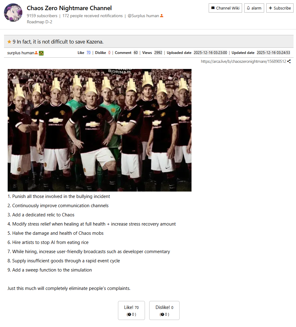 у корейцев основной тренд на форуме - думпостинг им очень нравятся посты что игра умирает, продажи падают и все такое также какой-то уволенный чел сливает личные переписки-инсайды где какая-то тряска чтобы нагнетать самые трендовые видео на ютубе связанные с игрой не про геймплей а именно про движуху с борьбой корейских игроков против игры начали качать идею о том что нейронка - зло и ее нельзя использовать при создании игр, дизайне персонажей и все такое (хотя коейцы обожают нейронку)