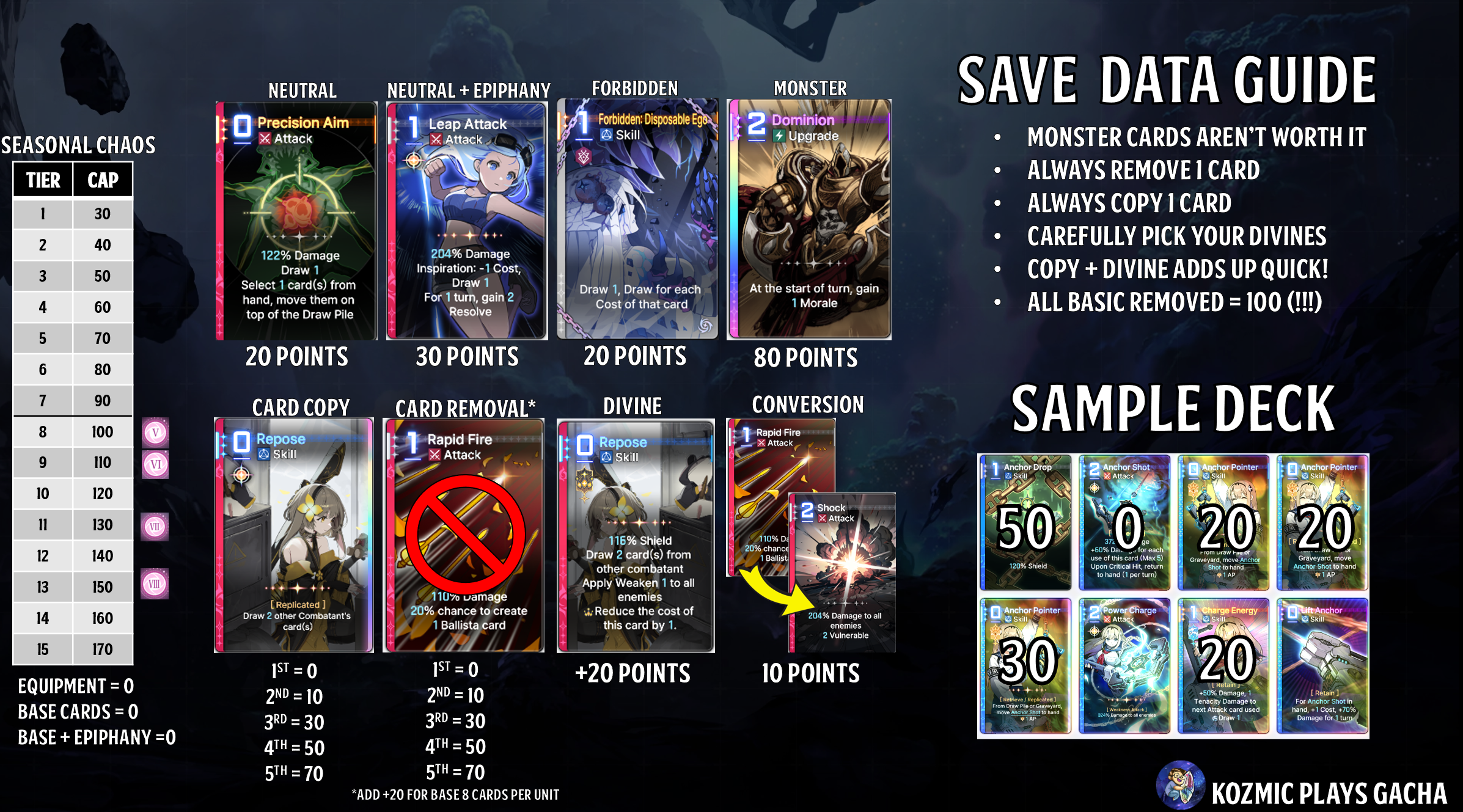 >Войды будут ебать Я и сейчас прохожу хай чаосы: Рин, Рей, Чизуру. Теперь нацепив 3 сета будет +90% урона к войд картам. Походу эра базовичков намечается, т.к. ремув даже одной базовой уже стоит 20 поинтов, при этом удаление не стартовых карт ничего не стоит.