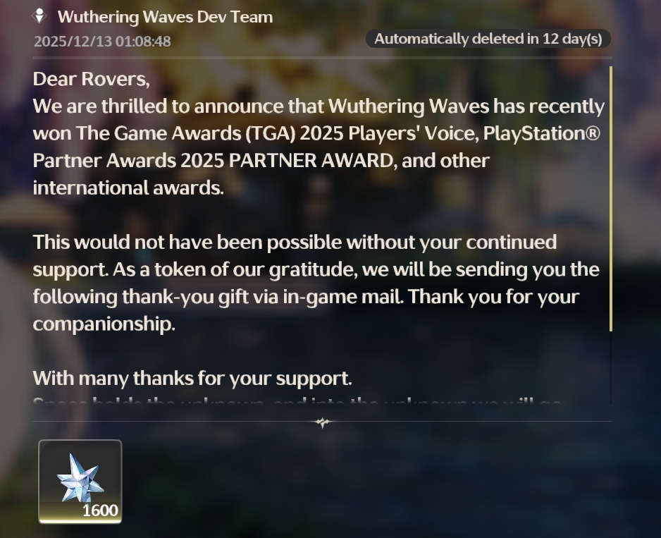 ✦Период технического обслуживания: 22.12.2025 04:00 - 29.12.2025 04:00 (время сервера) ✦Перевыпущенные награды: Астрит x160, Улучшенная запечатанная трубка x5, Улучшенное резонансное зелье x5, Кредиты Shell x60000 ✦Период получения почты: 22.12.2025 04:00 - 29.12.2025 04:00 (время сервера) ✦Условия участия: Достигните 30-го уровня Союза до окончания периода технического обслуживания. Почта с перевыпущенными наградами будет действительна в течение 30 дней.