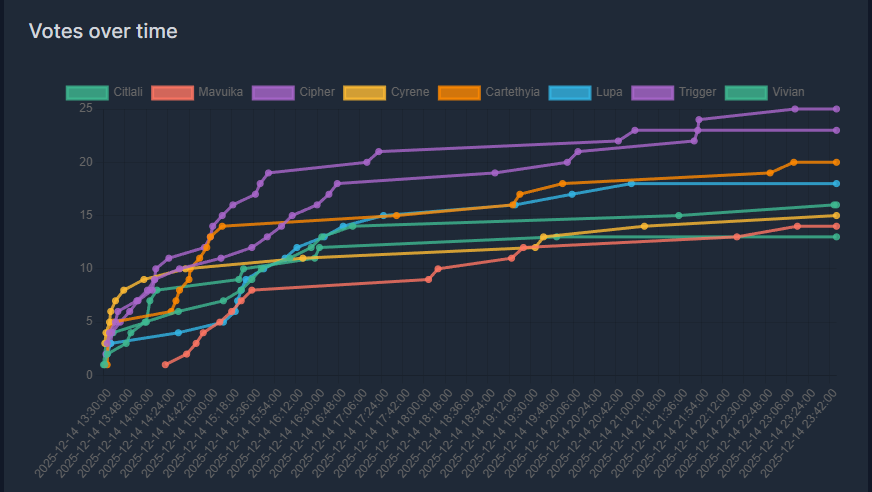 Я например голосовал, не потому что думал что выдадут астриты. Наоборот я был уверен, что не дадут - потому что за это вроде как не резрешают давать организаторы конкурса, да и формально мы и правда 1600 астрита получили не за победу на ТГА так то. Более того я один из тех кто утверждал в треде, что за это награды давать не будут потому что сам в это верил.