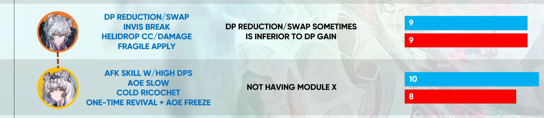 Гум - мета дефендер в рогалике, так как хил и бесплатно по хоупу. Итан - мета в новом рогалике, так как бесплатно и в нём враги китайские, которые требуют количество тычек. Дота и рут Итана очень хороши против них, лучше только Мизукич под модулем, но это 6хопа, иногда этого нет, а взять что-то со специалист рекрута надо, ведь уже бои близко, ну ты понял. Метеор была ок в прошлом рогалике, хорошо сочитается с Аркетто под рукой и модулем, но не приоритет. Можно обойтись Мэй или Крус в таких ситуациях. Миртл, но там ещё м3 надо выдавать на первый скилл, е2 только для этого берут, чтобы сразу прожимать скилл. Но можно без Миртл играть, есть много других вг. Перфюм можно брать, если нужен аое хил за 0хоупа, но я хз по боссам в новом рогалике, в старом были боссы, где аое хил был норм. Вроде всё, там есть ещё неплохие, но это херня. В новом рогалике есть ноды, которые просят китайских персов, по этой причине Луо Сяо хай норм. Но он коллабный, вряд ли у тебя есть. Но можно и без, Итан вроде тоже китайский, ещё один плюс для него.