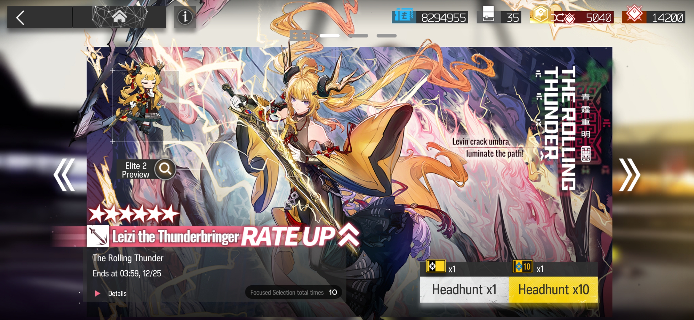 Также доступен баннер The Rolling Thunder, который продлится от 11.12.25 до 25.12.15 6★: Leizi the Thunderbringer 5★: Record Keeper / Warmy