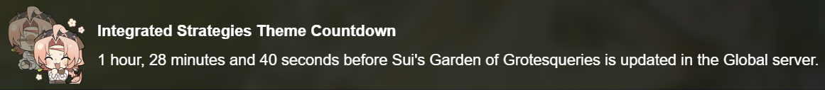 Помимо прочего стал доступен официальный веб-сайт, посвящённый новому сезону Integrated Strategies: Sui's Garden of Grotesqueries, в котором вы можете получить небольшие но приятные бонусы: https://arknights.global/gardenofgrotesqueries/