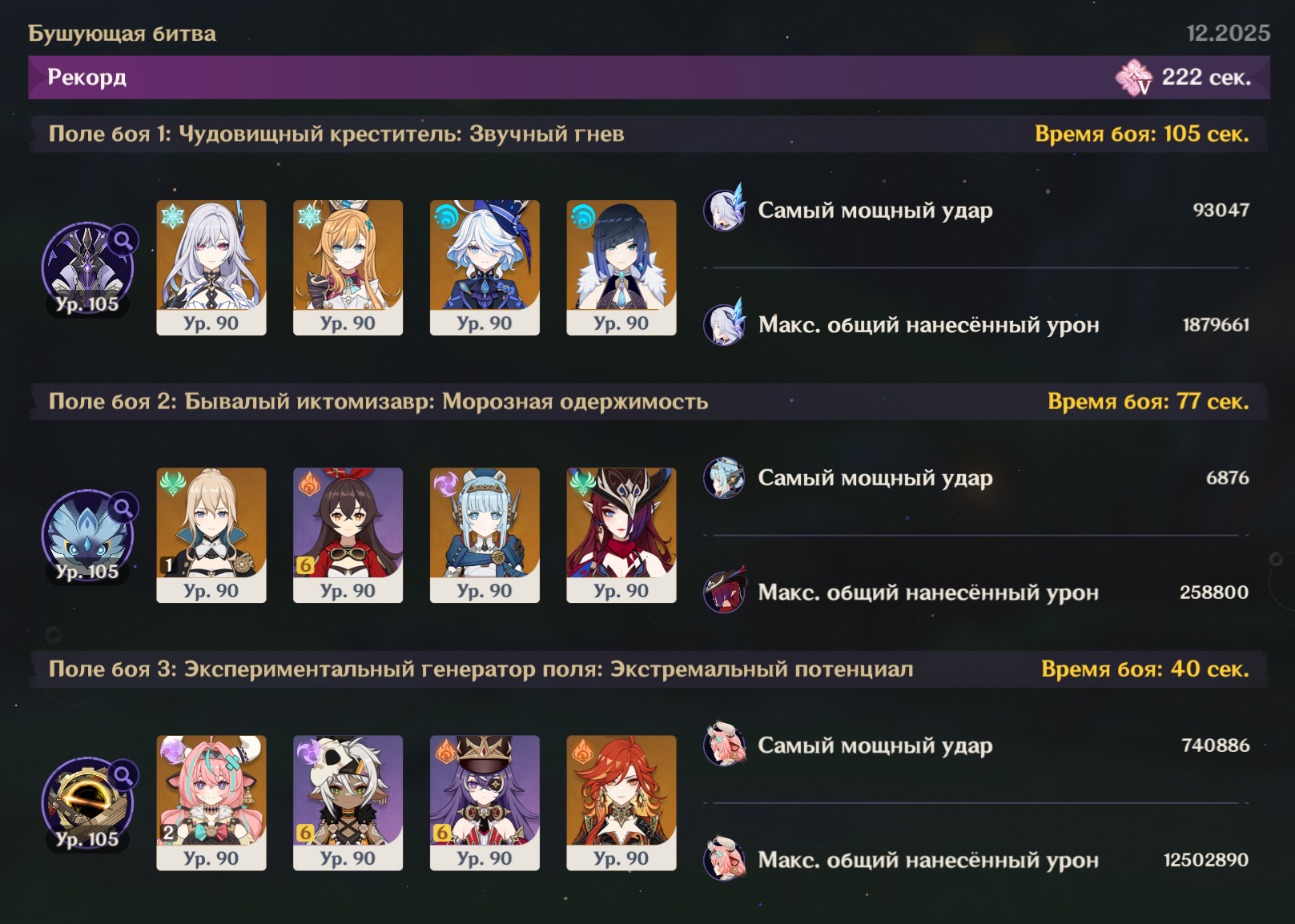 Теоретически можно пройти лучше, без последней ротации, сэкономив секунд 10 в конце, но особо ретраить не стал. С бабкой вместо шилки почему-то проходится явно дольше, хоть и цифры Орешки получаются больше. Видимо Фуриночке не хватает собственного хила