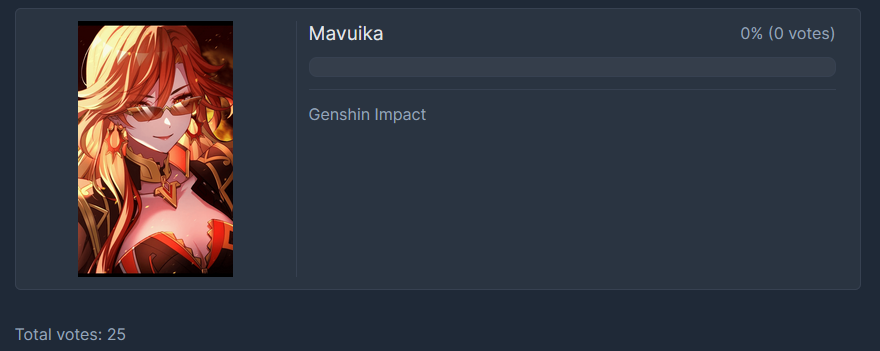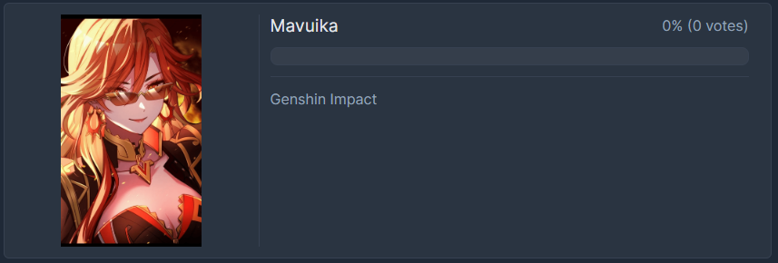 >>6051374 Манипуляция артами в голосование - это кал. Должны быть дефолт иконки чаров, а не выбранные кем-то арты, где чары в шмоте, который в игре вообще не существует.