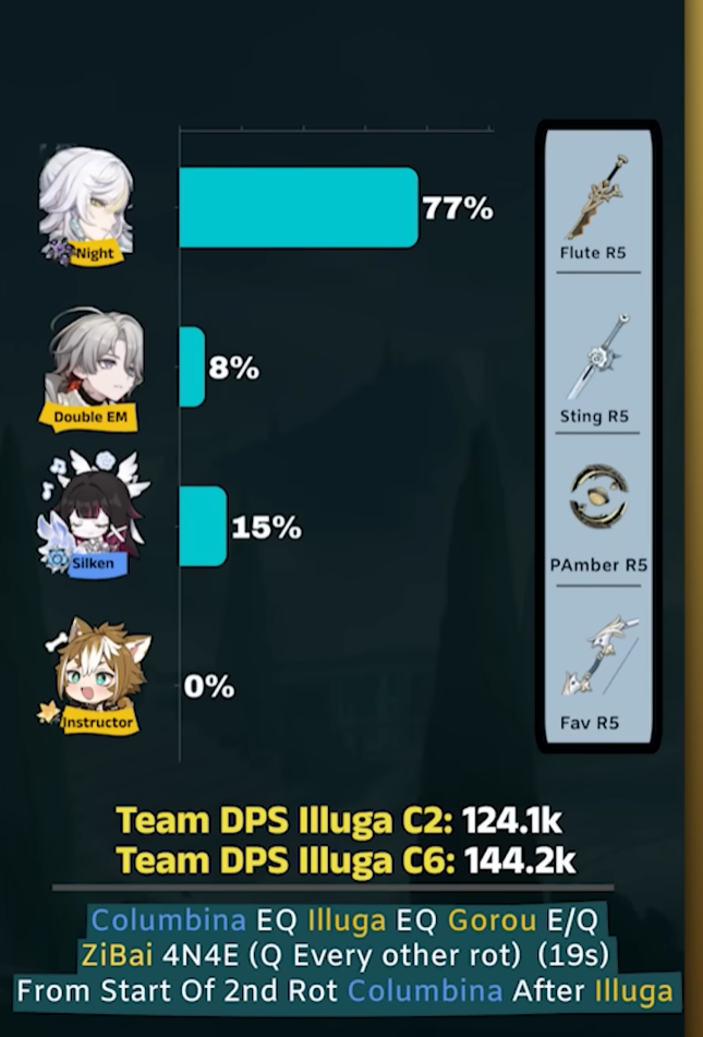 Лунный урон в электро пачках у клумбы просел на 17%. В дендро пачках на 42%, гео на 18%. На с0. Учитывая что бафов на процентики на констах нет, то на с6 просадки такие же. Овари да.