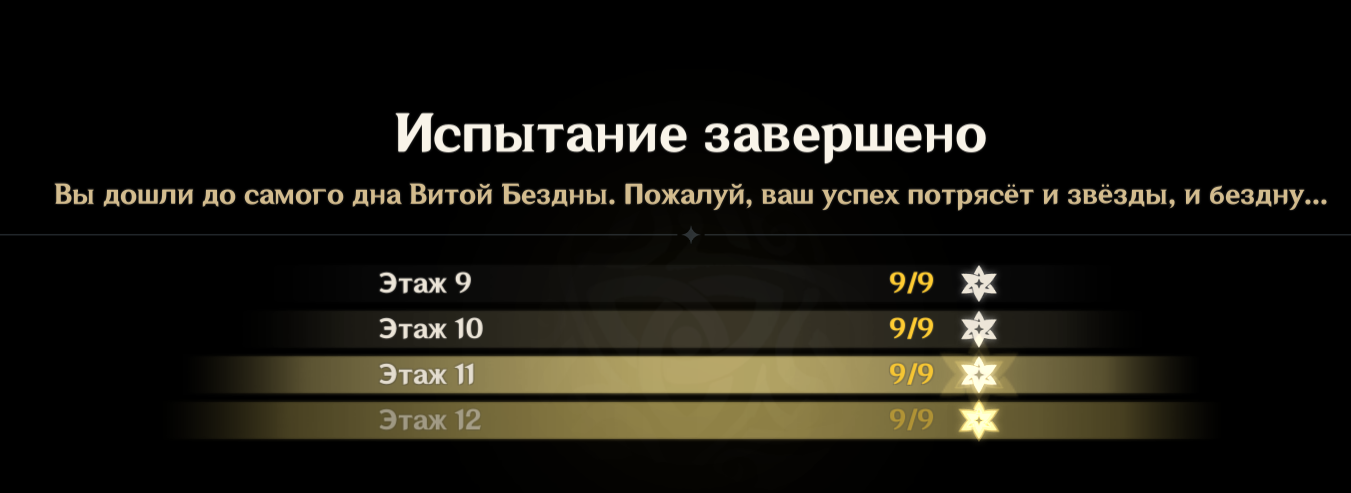 Даже скриншот со своим успешным закрытием бездны постить не буду, ведь вы и так знаете что я её пройду. Я же крутой. Я же намба ван Мне все фатуйки дают