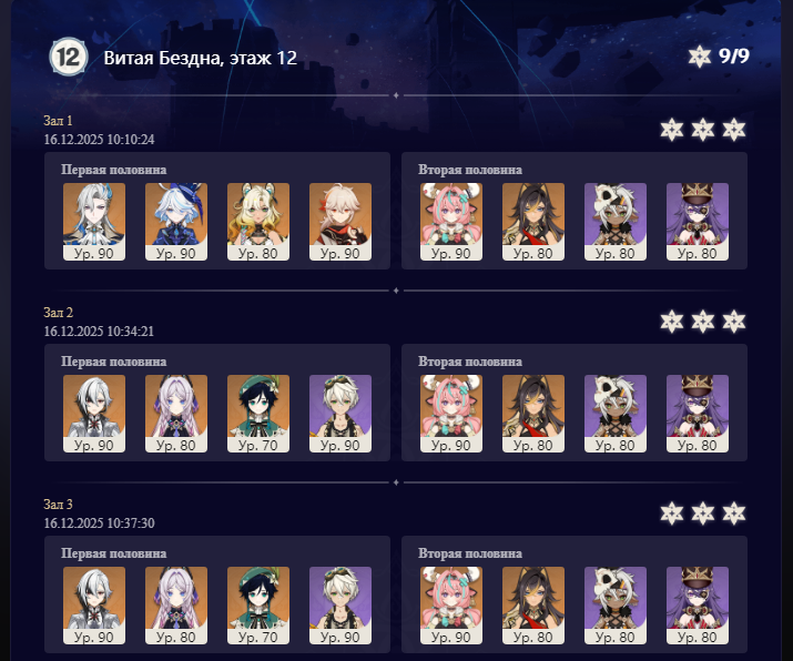 Ну бездна так себе. Не то чтобы кокблочная, но неприятная. Базилет на первой половине ебет до 12-3, там одного пиро в команде уже не хватает для настака кокблочной пассивки. Но если пробовать ф2п пачку Дурин, Венти, Бенис Сянка, то 12-1-1 это 2 минуты дроча, 12-2-2 норм, 12-3-1 приятно. Если вместо Венти взять Фуру то вообще разьеб всего. Вторая половина душная из-за кокблочных харьков и немножко из-за гео щита. Но даже так Флинс и Нефер их осилили. 12-3-2 вообще ощущается как микробосс, тк после снятия щита ультом+ешкой Деда Флинс снес его за две ротации. Нефер наверно еще быстрее бы снесла, если бы я пошел дальше 12-2, но я взял Нилупачку просто чтобы посмотреть как она себя поотив харьков показывает, так что гео щит не снести было.
