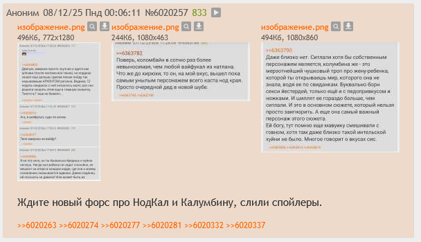 >>6056536 Не, было бы круче, если бы поначалу была вот такая вот аутичная милаха, как сейчас, но чтоб знаешь, тонко чувствовалась в ней эта скрытая НЁХ, которая периодически из неё проскальзывает мимолётно то в каких-то действиях, то в диалогах, но без акцента. Чтоб знаешь, саспиенс нагонять... А вот в какой-нибудь решающий момент с файтом сюжетным, где прям нужно что-то серьёзное сделать, Колумбина такая ХУЯК - и идёт кошмарить вообще всех, заставляя просраться как друзей, так и врагов. И тогда сразу бы было понятно, почему во Дворце снежнинцом все срались от просто существования рядом с ней.
