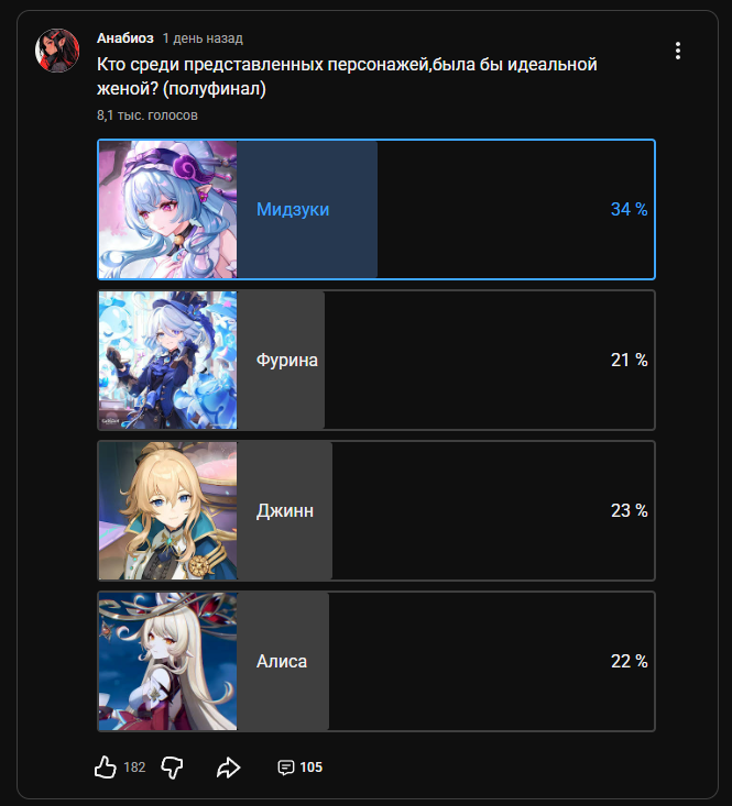 >>6057360 Вот обидно, кстати. Столько в геншин играю, а ни разу не довелось во сне с вжушкой чаю попить. Один раз только, в температурном бреду снилось будто я кручу оружейку, мне падает всякий мусор, я получаю блеск и на блеск снова беру крутки и снова кручу оружейку. Нафиг такие сны.