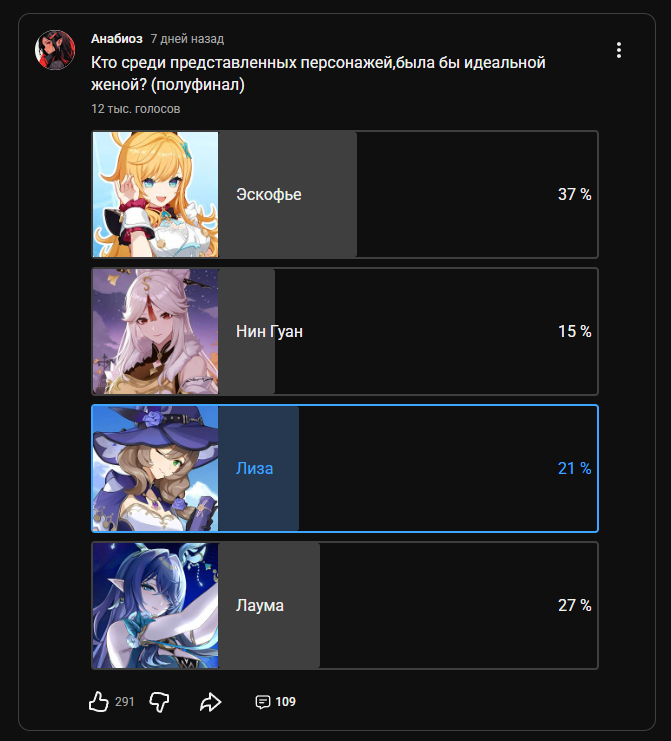 И сколько вообще на вторую половину планжовичков в игре? Корова, ситлаля и всякий неюзабельный трешак типа цапли, ололоши, альбедо и гэйминга - все? Какой следующий кокблок выдумают?