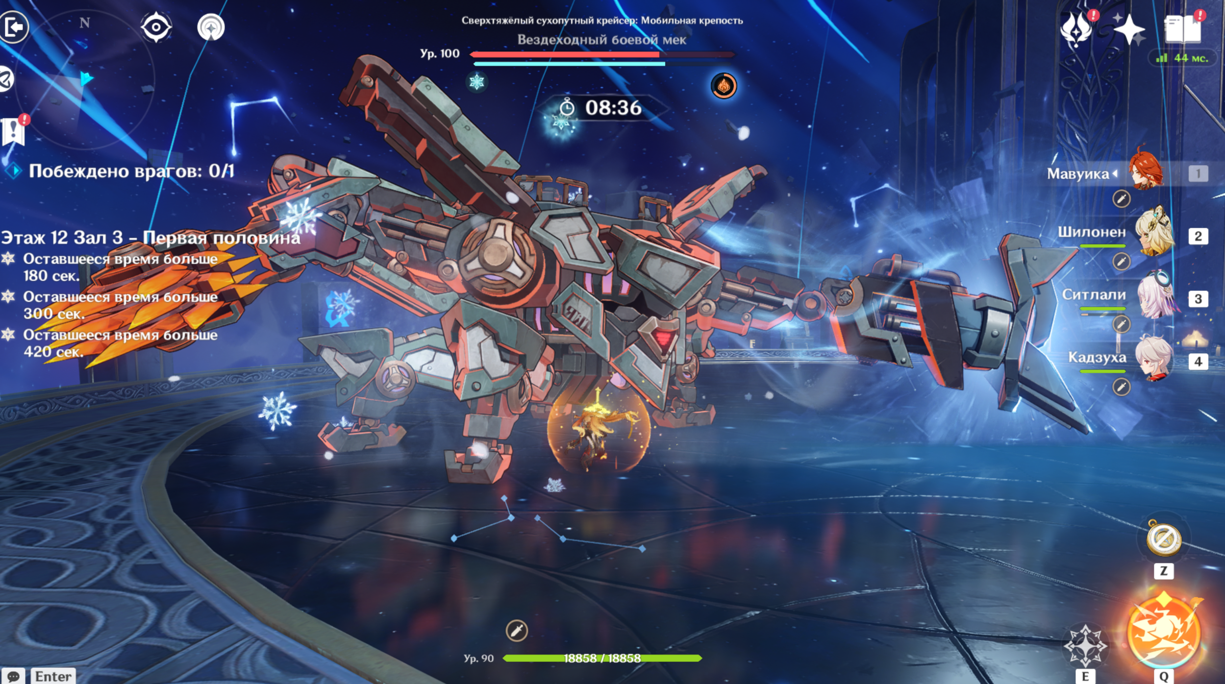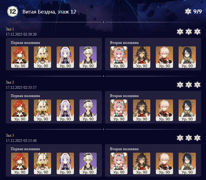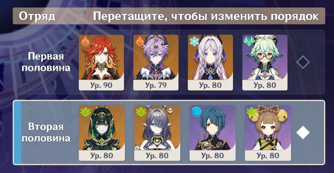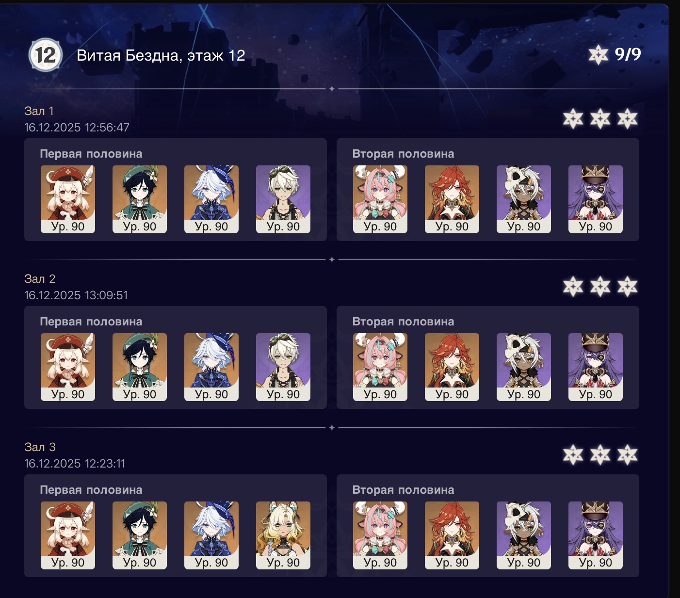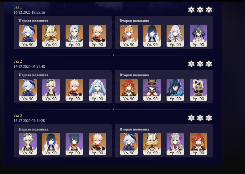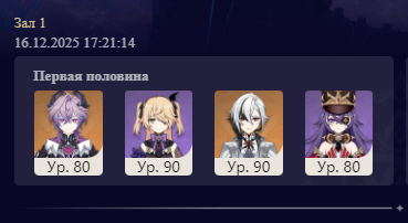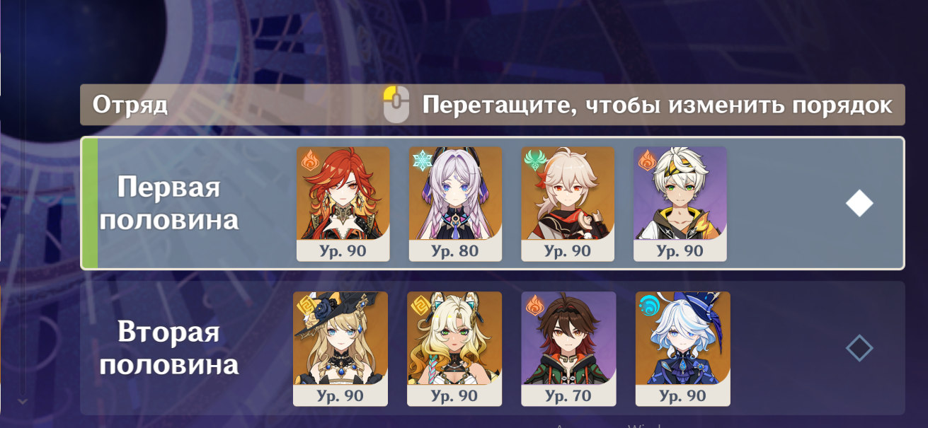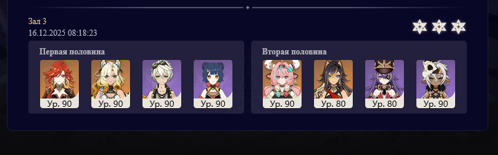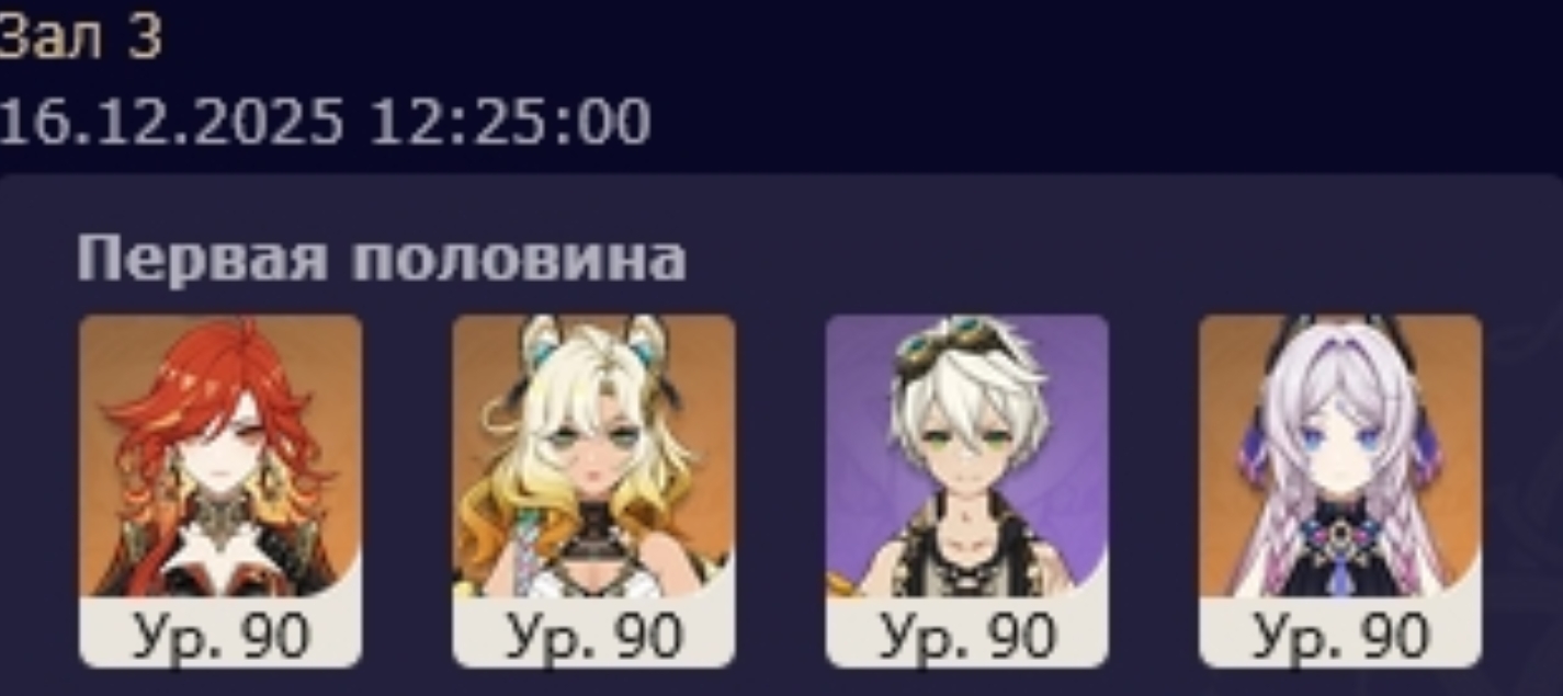 Пиздец, траил последний зал больше получаса. Так и не смог снести первому боссу все хп за один цикл, еле получилось добить через ульту Мявы в резист во второй цикл. Во второй половине Фишль сдохла в самом начале, пришлось без нее.