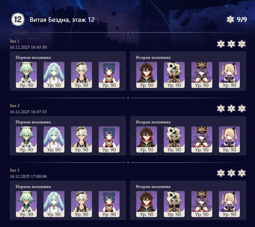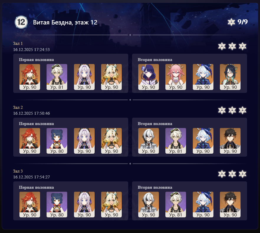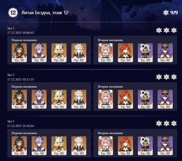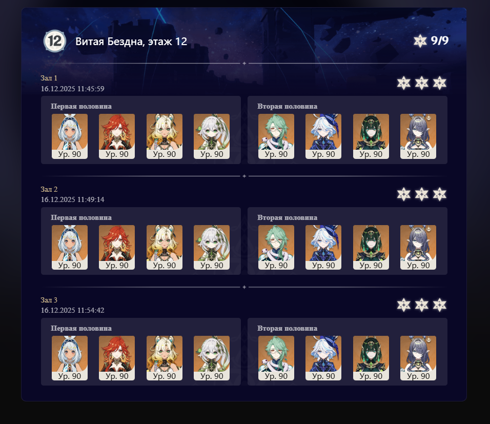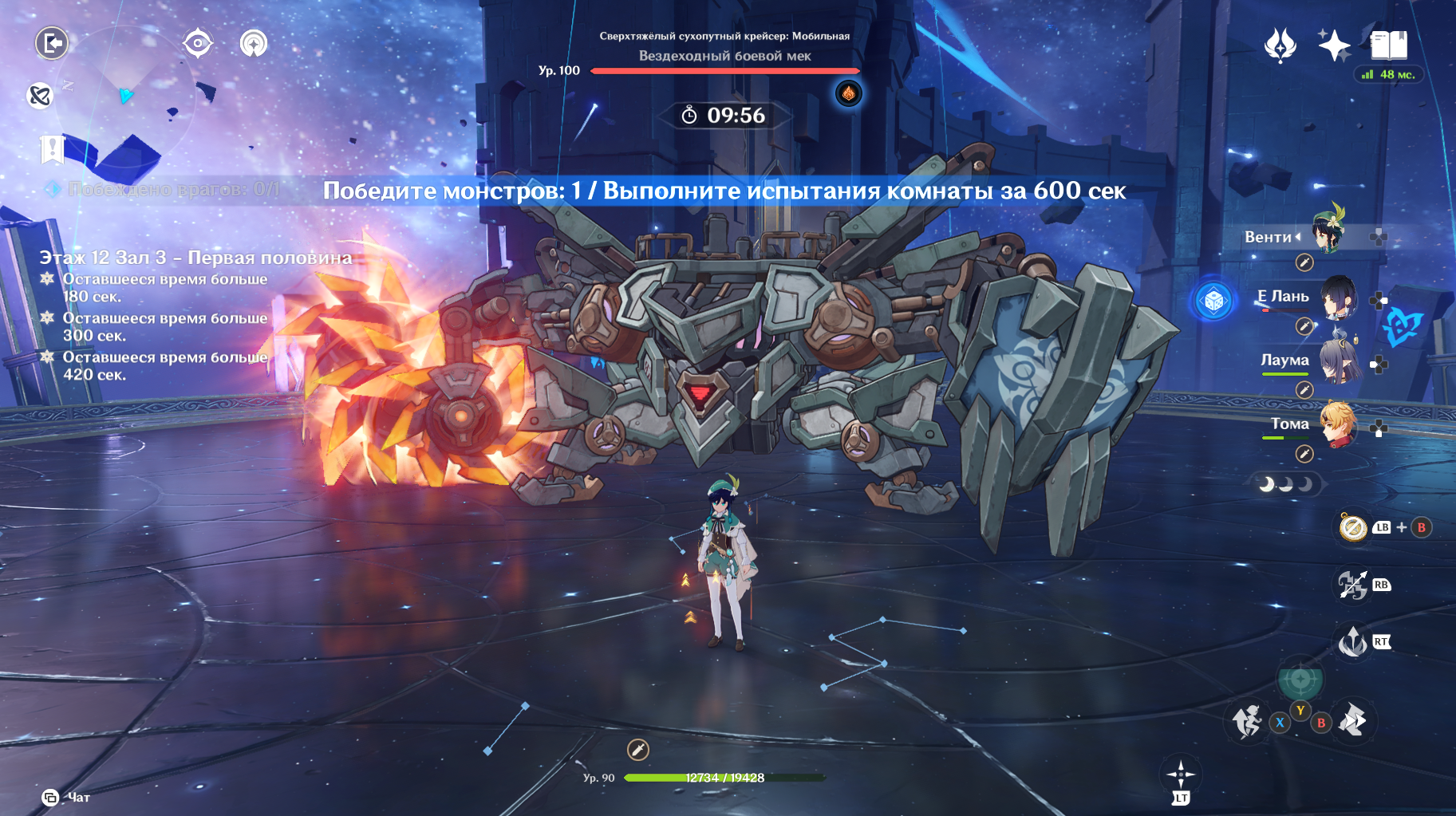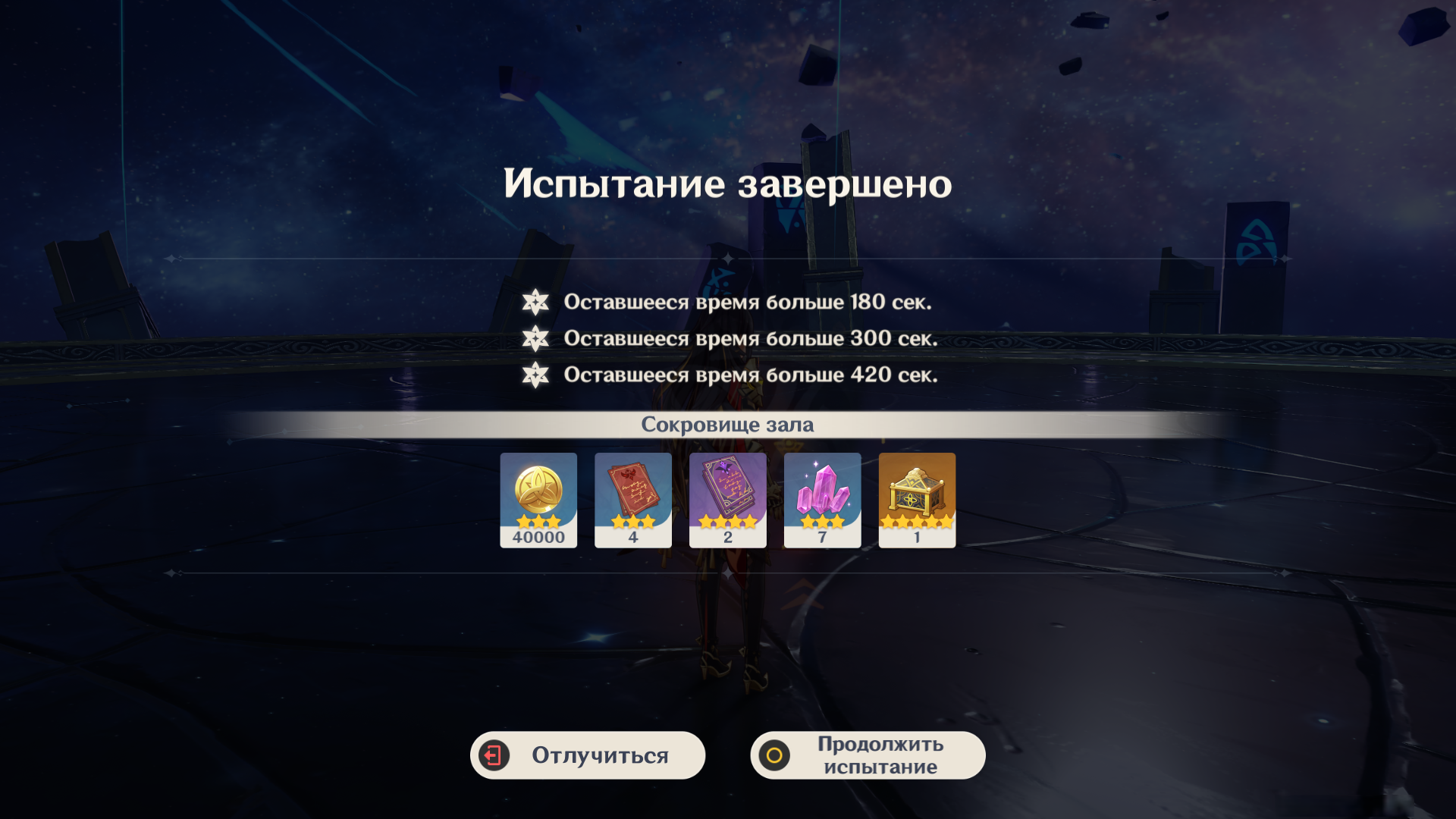 Пиздец, траил последний зал больше получаса. Так и не смог снести первому боссу все хп за один цикл, еле получилось добить через ульту Мявы в резист во второй цикл. Во второй половине Фишль сдохла в самом начале, пришлось без нее.