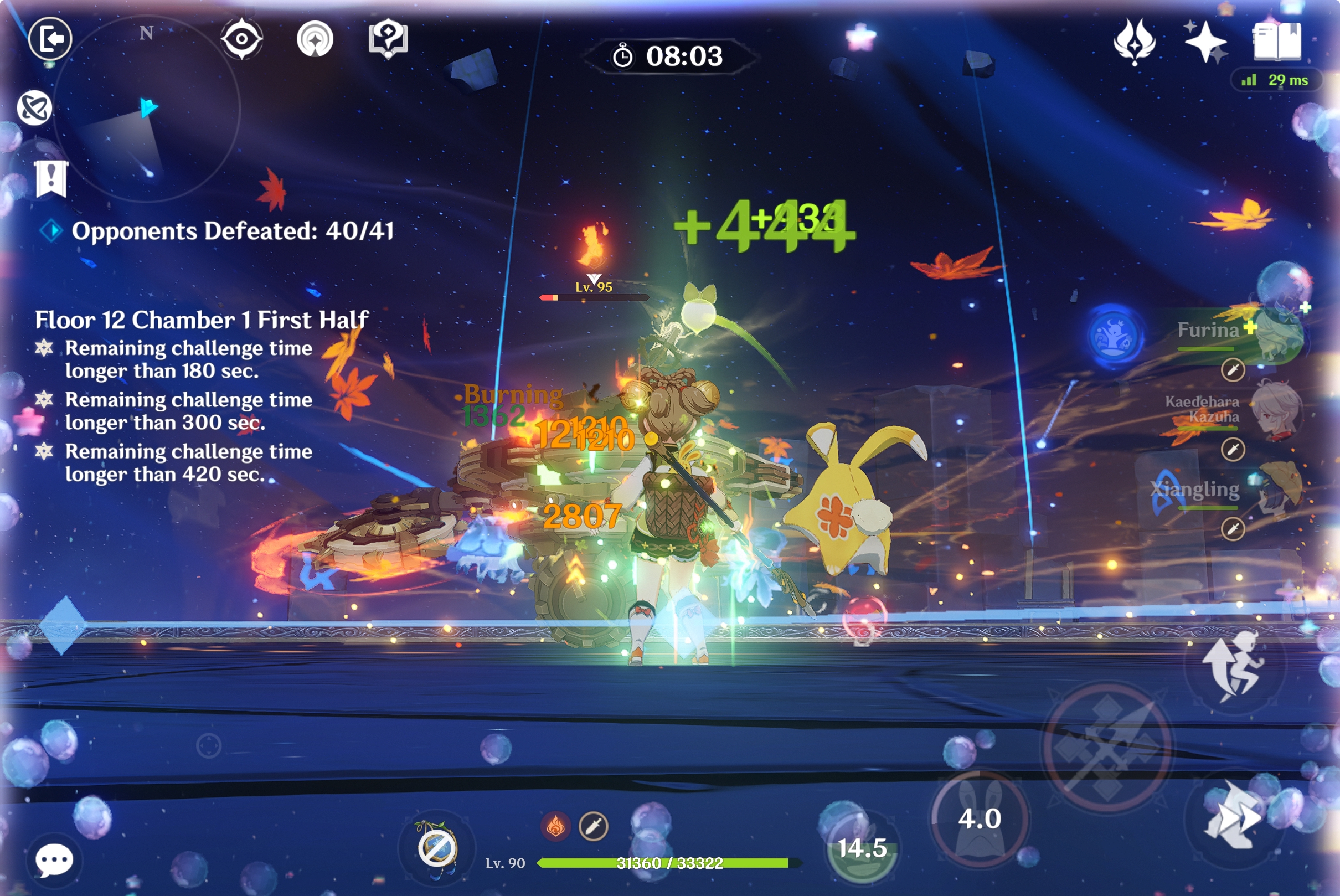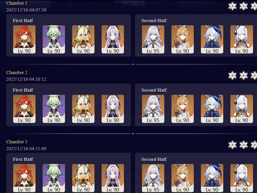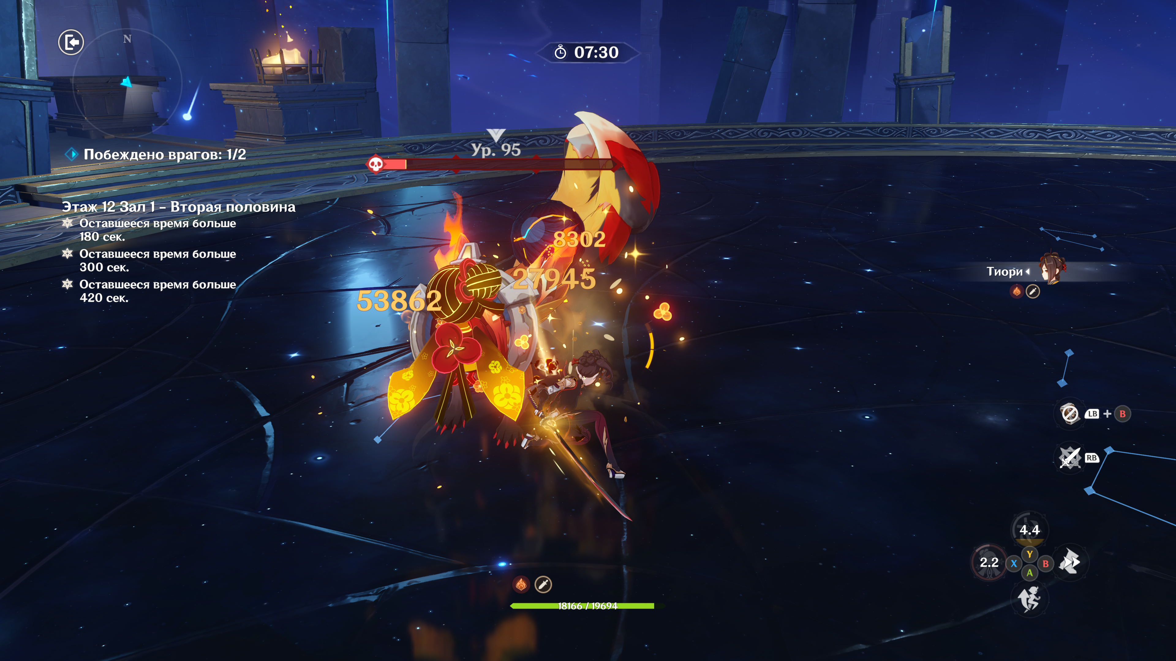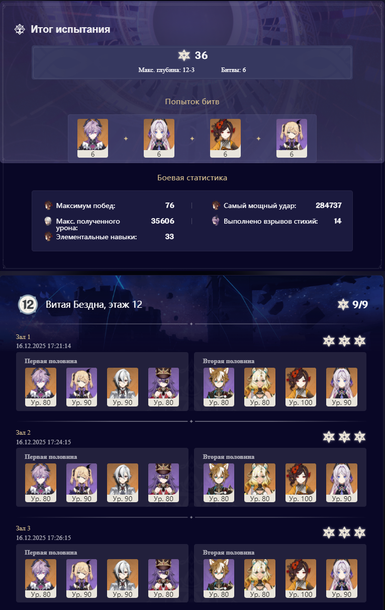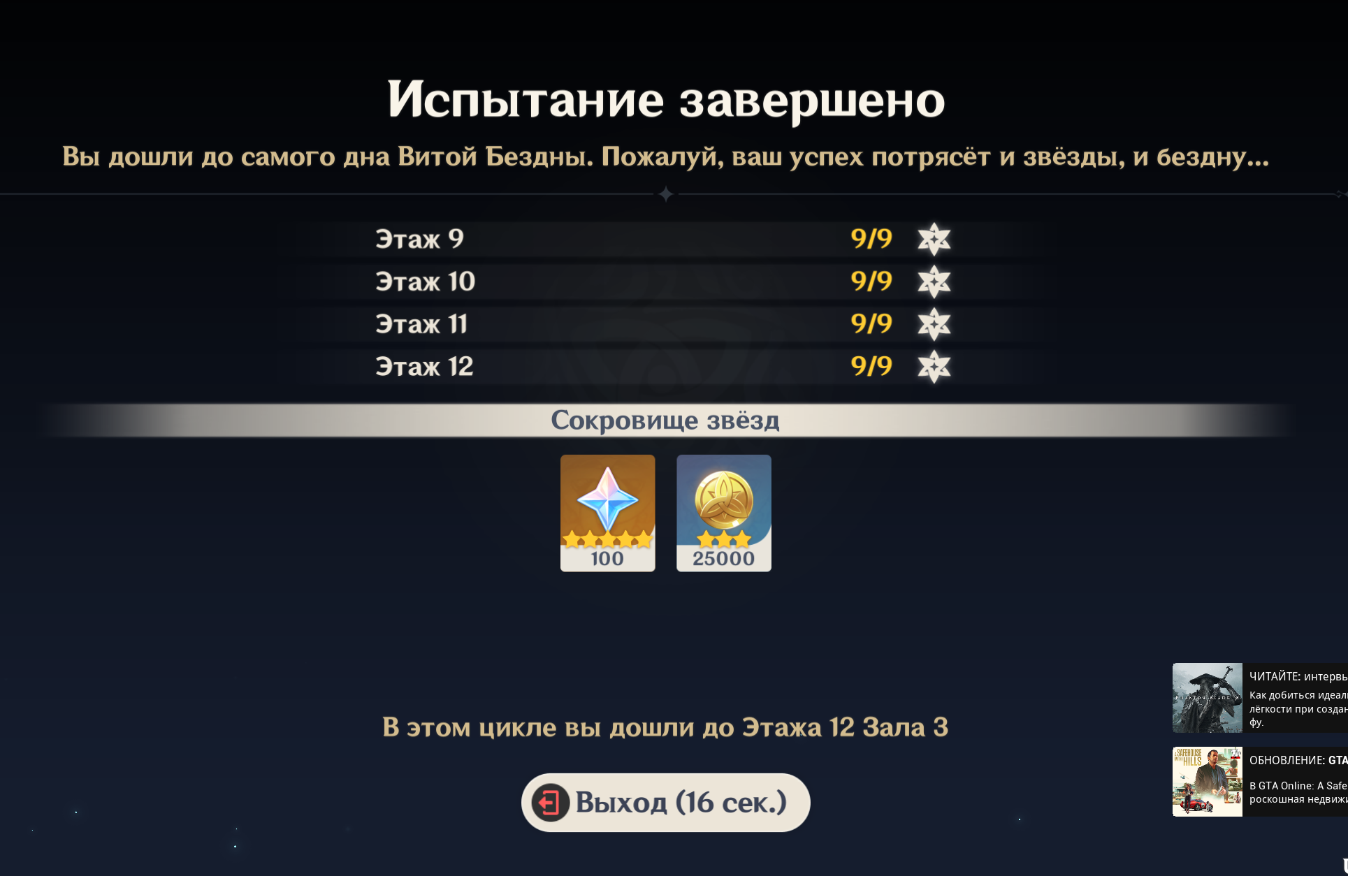 Пиздец, траил последний зал больше получаса. Так и не смог снести первому боссу все хп за один цикл, еле получилось добить через ульту Мявы в резист во второй цикл. Во второй половине Фишль сдохла в самом начале, пришлось без нее.
