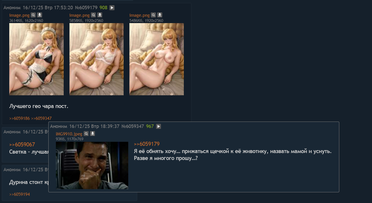 >>6059646 Официальная жена и официальная любовница гг (плюс братик/сеструха) Все остальные девочки из баннеров заранее обязательно указываются с их мужем для шипов (муж прописывается мелким шрифтом внизу баннерного арта, и прикрепляется его мини-арт). Сосисоны / жены 50/50. Артоказик удаляется из игры, вместо него раз в неделю выдают селектор на любой арт с выбором фулл статов без рандома. На официальных форумах вводят политику нулевой терпимости к неканоничным шипам (девочки не с её баннерным мужем и гг с кем-то кроме жены, любовницы и братика/сестрички). Сеттинг игры фиксируется как фэнтези. Любые сайфай элементы удаляются к хуям. В мире есть магия. В мире нет никаких технологий 20+ века. Никаких космических полетов, двигателей внутреннего сгорания и компьютеров, даже у прошлой погибшей цивилизации. Гг игры является самым сильным по боевке персонажем игры. В новых патчах он апается, чтобы всегда оставаться самым сильным и метовым. Это проверяется по его пикрейту в эндгейме, где гг должен входить в топ 4 персонажа. Геминкам рассчитывается так, чтобы игрок мог выкрутить на фтп минимум половину всех персонажей, а на фтп + подписке минимум половину персонажей с их сигнами (не забываем про 50/50 жен и сосисонов).