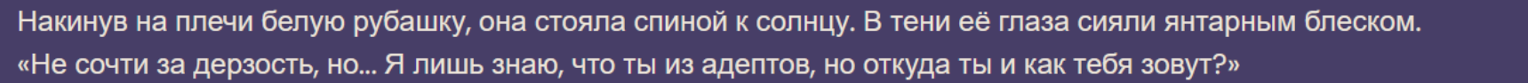 >>6059646 Чмоня приходит в Монд и тут гром молнии всё озаряется фиолетовым светом. С неба падает Дыня приземляется в супергеройской позе, смотрит на Чмоню. потом на Вентиля, на небо и на Паймон, достаёт меч из сисек и разрубает на пополам маленькую обжору. Вместо Паймон падает бездыханное тело Асмодей, потом они все обнимаются и идут кушать циплёнка в медовом соусе. Идут титры звучит финальная песня. Конец.