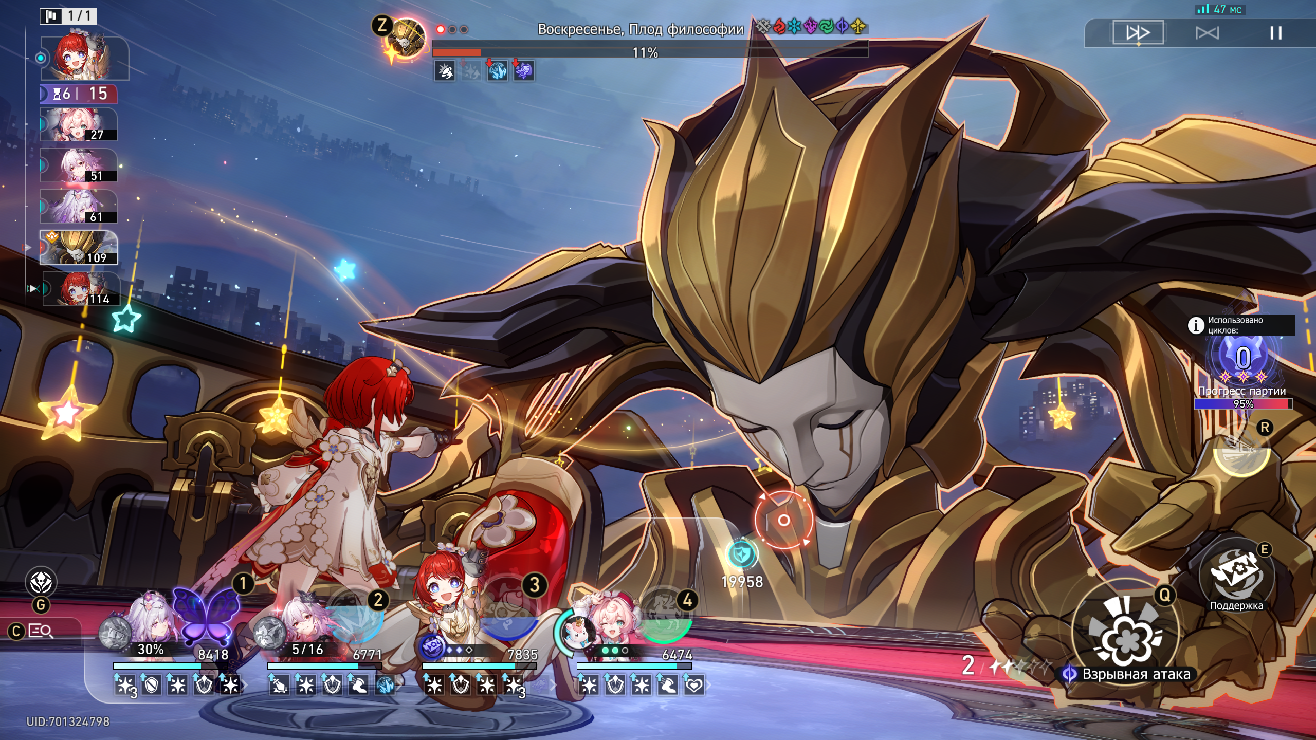 Кстати когда Кирену вытащишь, дай Кирене тот арт на инстаульту. Дальше играешь на старте ульт Кирены в кого-то кроме Аглаи -> ульт Аглаи -> второй ульт Кирены в Аглаю и Аглая будет разгоняться намного-намного быстрее.