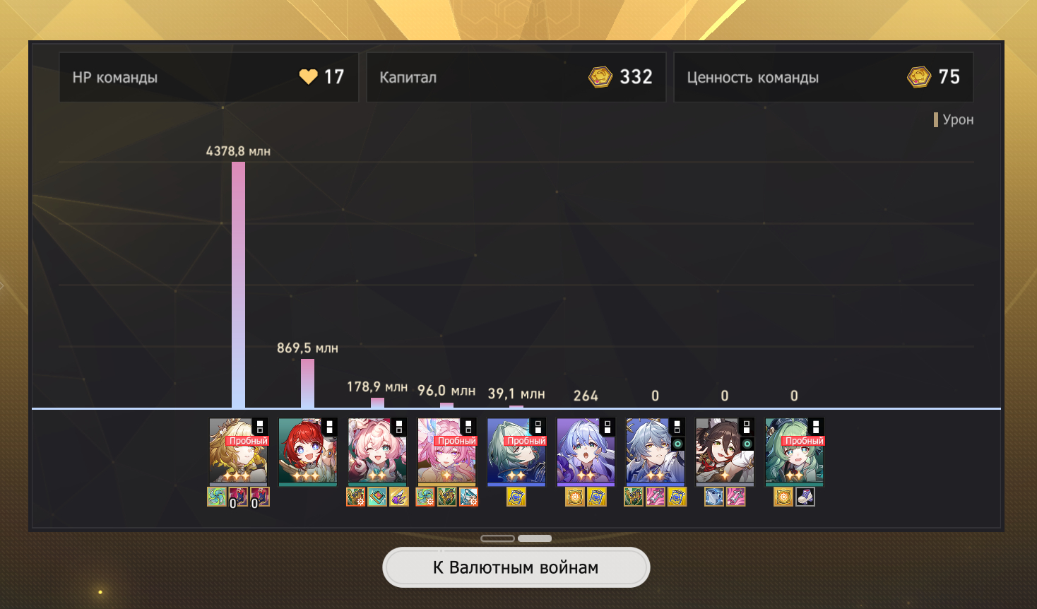 >>6063126 >>6063113 >>6063109 Короче я въебал ран даже с учетом того, что аглая апнулась до 3зв, она просто блядь не наносит урон, у меня и доты, и просто стакеры хп типа мартика и каси, и облизывание ахерон в разы большие цифры и результаты показывали, кал какой-то