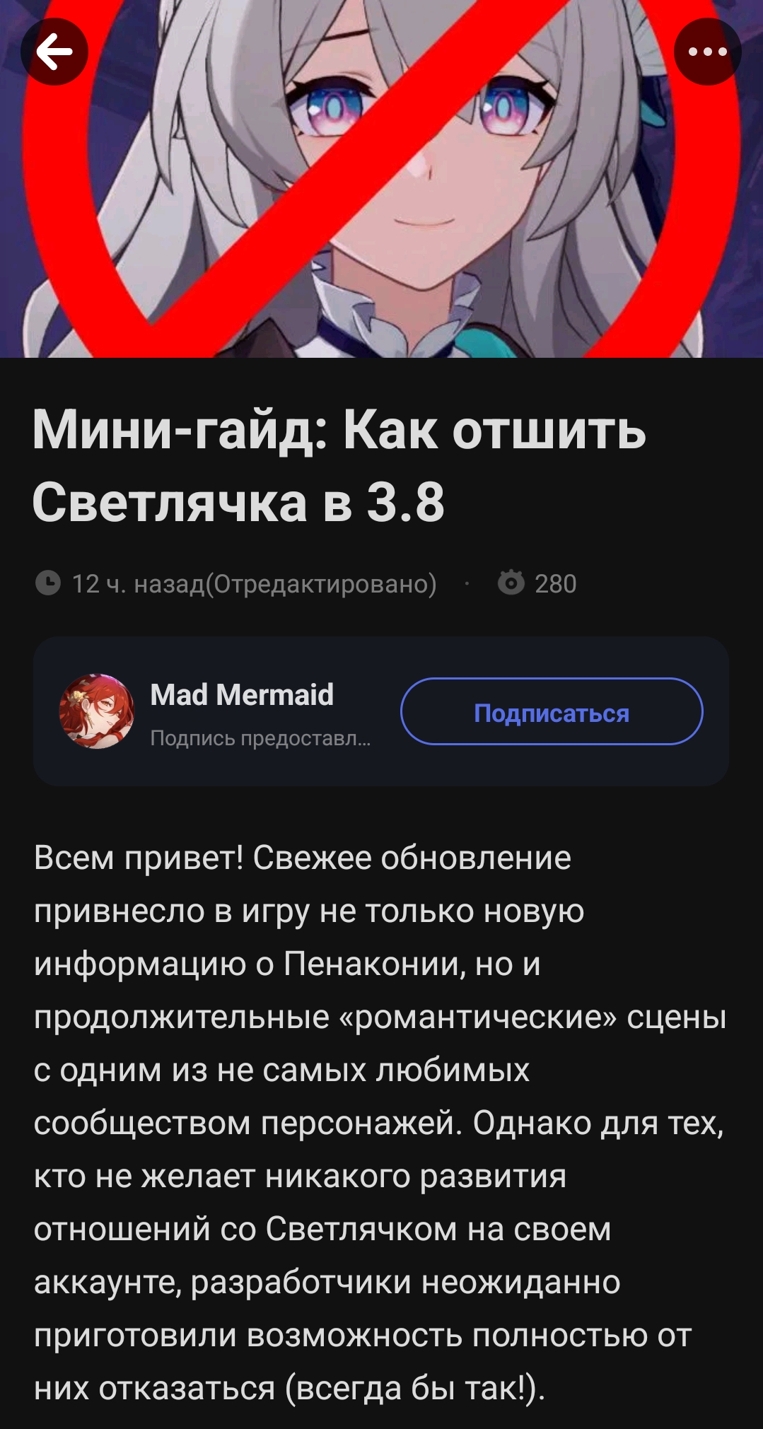 Жаль, что Шаоджи полноценно не дадут арку писать. Он ведь опять напишет пару базированных глав, а потом все отдадут на фриланс какой-нибудь паймоне, которая будет писать про своих боевых падисариков. Такова судьба этой проклятой игры, увы
