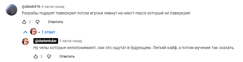 Еслиб предстоящему ВХ сделали геймплей на столько замороченный что обычный игрок на ней дай бог 20к настукает а киберкотлета убивает босса, то хуй бы её кто крутил, моментальный провал в продажах либо вообще возвраты повалили бы.
