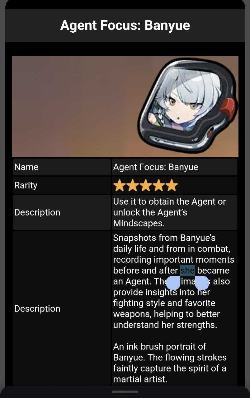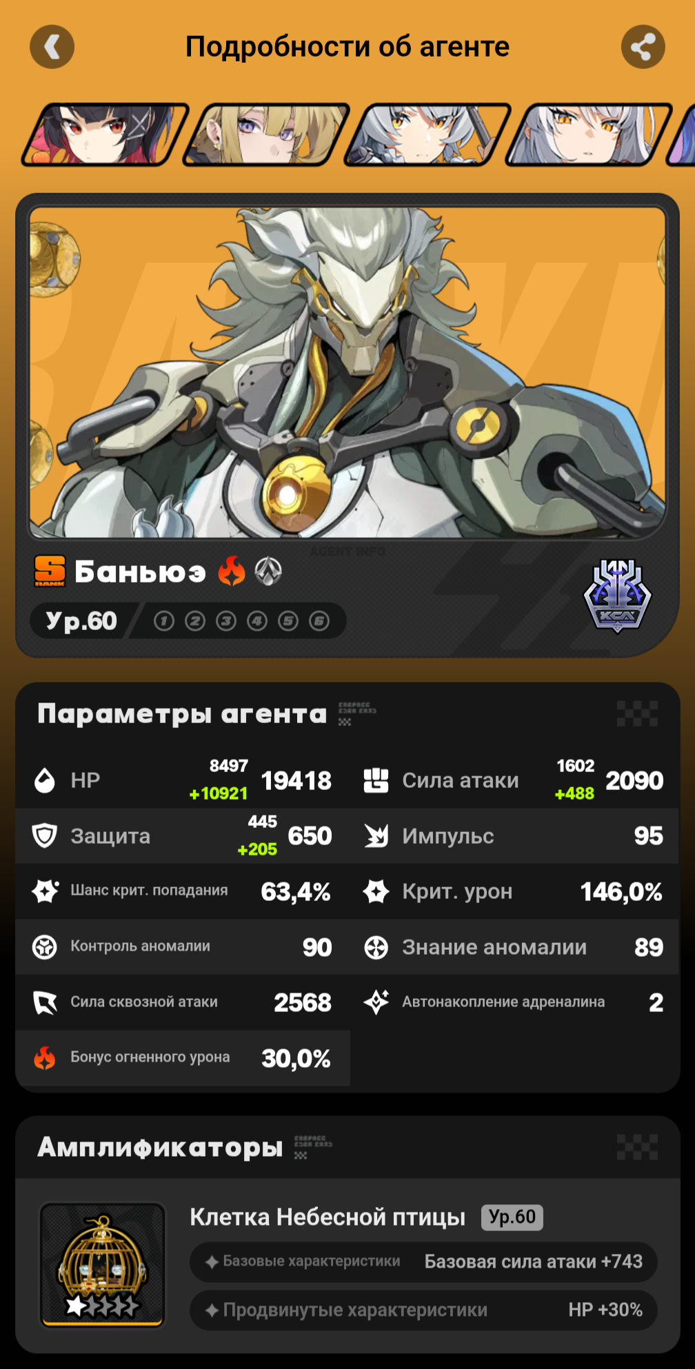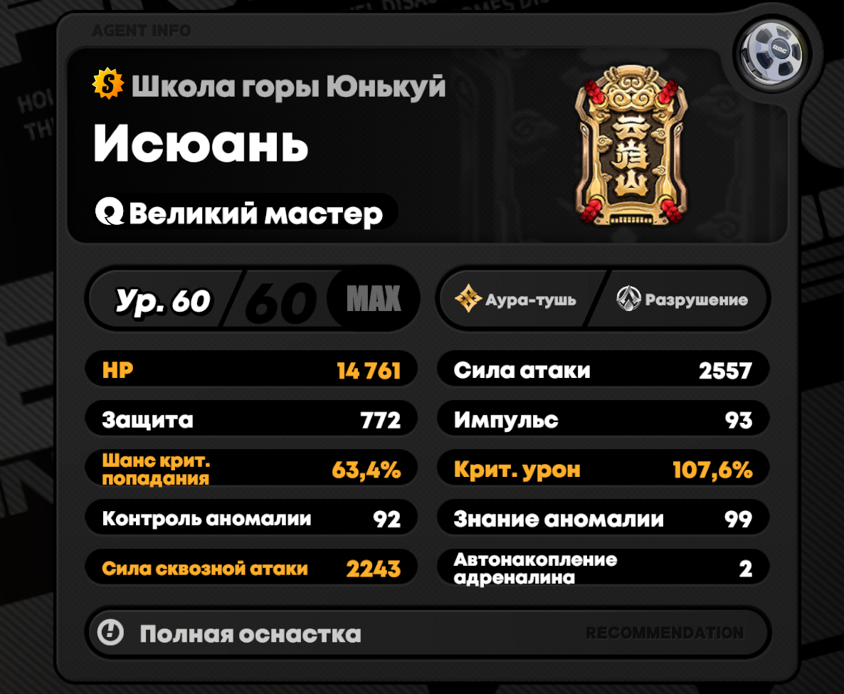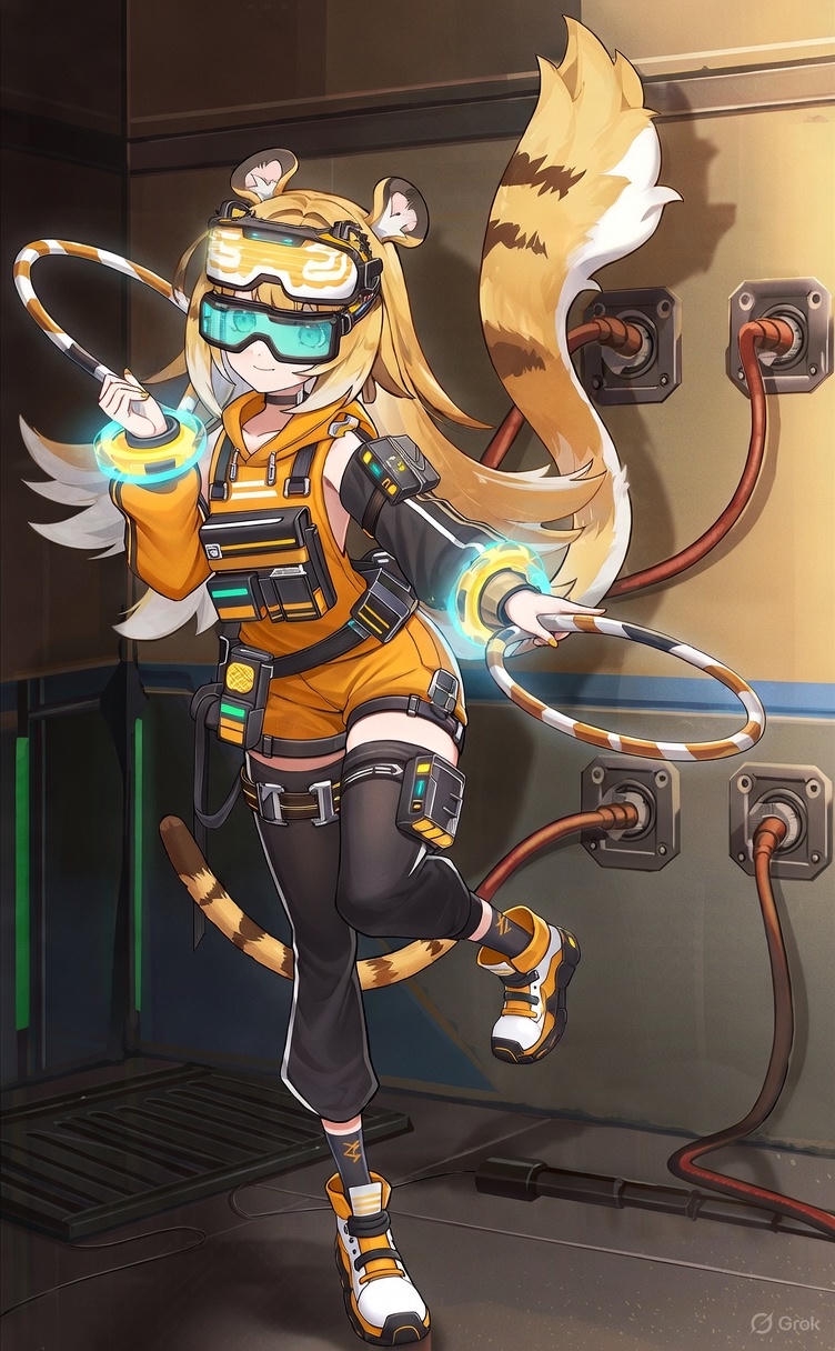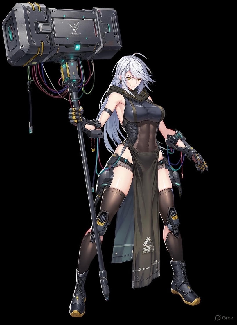 Исюань Роль: S-ранг, Разрушение (Эфирный/Электрический урон). «Гроза Каверн», глава храма и элитный охотник на самые опасные аномалии. Оружие: «Молот-Дезинтегратор» — тяжёлое двуручное оружие, похожее на гибрид кузнечного молота и квантового стабилизатора. При ударе вызывает каскадные цифровые разломы и излучает мощные электромагнитные импульсы. Её невероятная мощь не только в физической силе, усиленной экзоскелетом, но и в её уникальной нейро-адаптации. Её мозг может напрямую воспринимать и обрабатывать сырой, хаотический код Каверн без риска «цифрового помешательства». Это делает её живым оружием против Эфирных угроз.