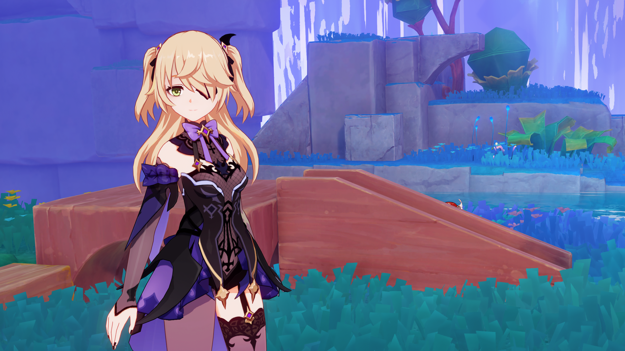 У меня есть Цаплиня, которую я крутил чисто по вайфу-фактор, у меня только Дилюк прыгает с ней, но я даже не качал его.