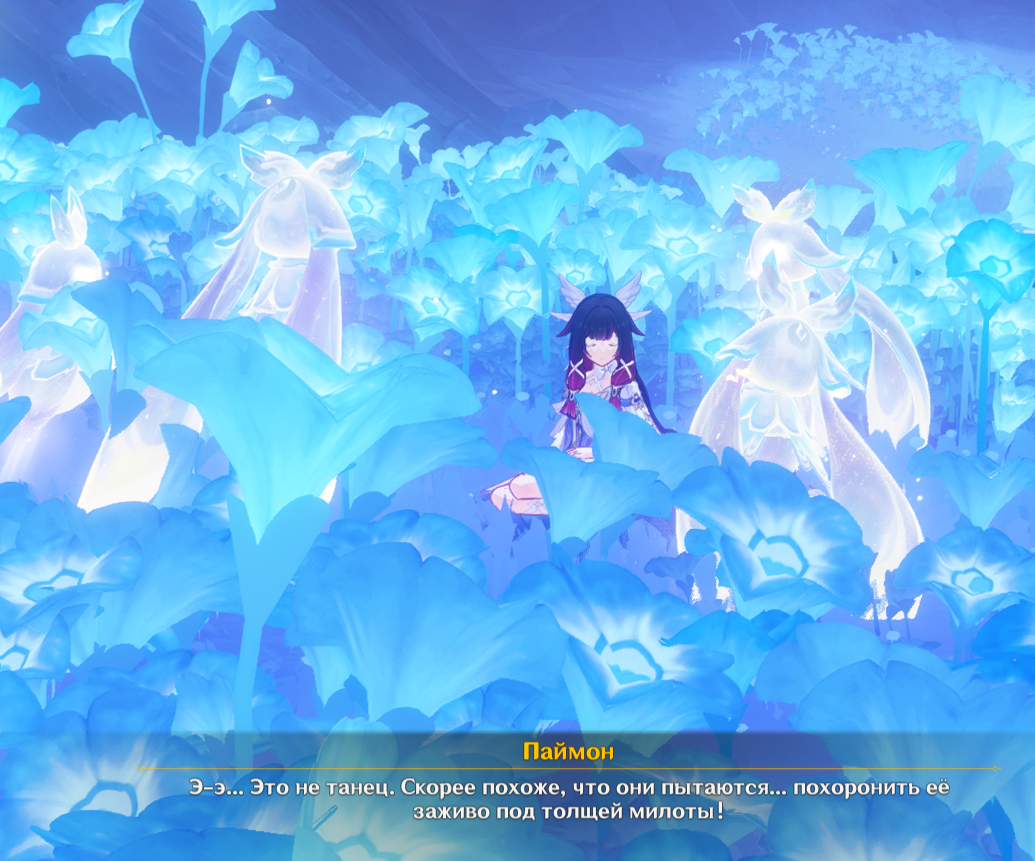 - Чего это она гонит такое? – Сянка посмотрела на архонта. Чжун Ли, бледный как смерть, механически теребил себя за запястье. Повариху он не слышал.