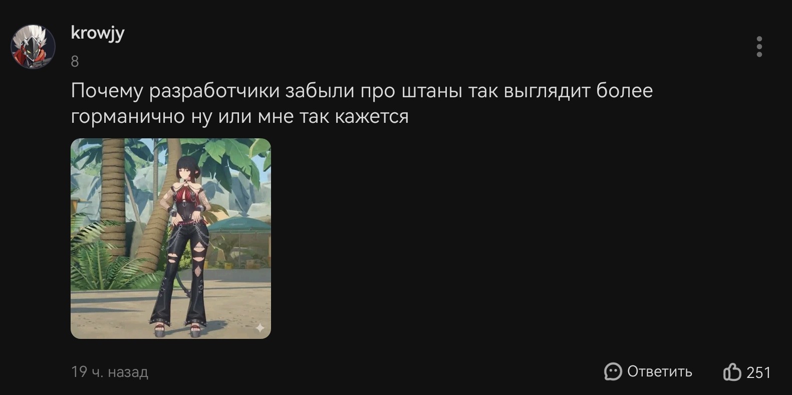 Тоже есть вуво-протык типа Глиномеса который топит за голых мужиков облитых маслом и как круто было бы, чтоб его ГГ выебал голый игровой мужик? И при этом также все визжат что нет мужиков, все женщины шлюхи и всех надо одеть в хиджаб?