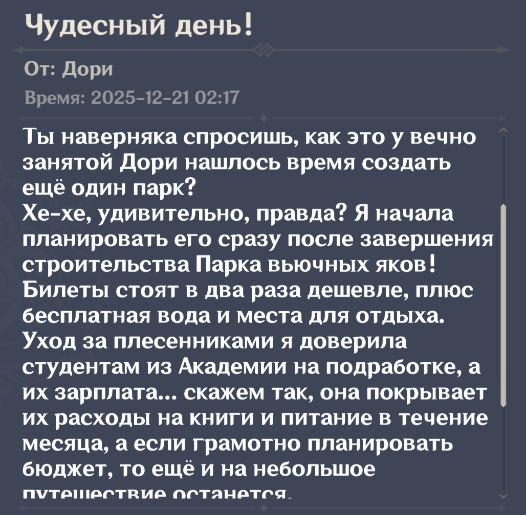 Ага блядь, обязательно зайду. И в парк плесенников зайду и в парк яков. Как же ляо заебал набрасывать в письмах то, чего в самой игре нет и никогда не будет.