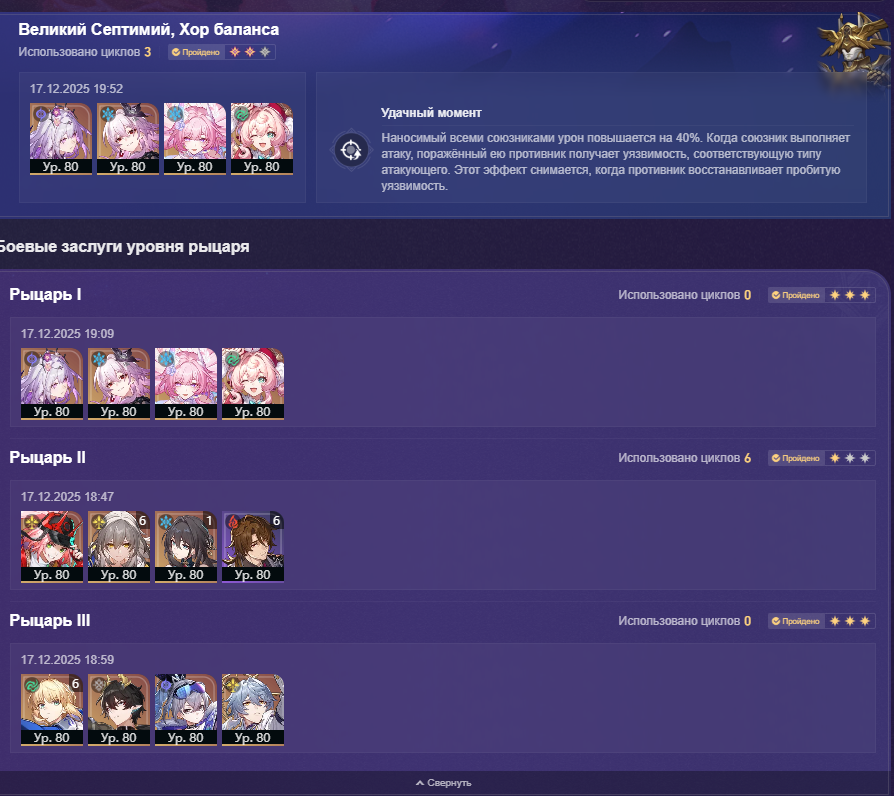 >>6081247 >Гися на третьего рыцаря. Тоже видел варианты, сам пробовал но не хватает урона. Где-то 2.5 цикла выходит. Гися/Кафка/Лебедь/Снежинка все E0S0 >Бабулю на помойку и заменить Касей. Проиграл флип Каси на релизе, а потом окатился и решил не докручивать чисто из принципа эту глобал пассивку. Лучше потрачу эти конфеты на консты до E2 Мартика >Сабер Е6 забыть полностью и играть Светой под Далией. Ну или хотя бы Касей. Ну Сейбер закрывает собой любую сторону за 2 цикла, кроме самого босса-Сандея сук.. Если Далию успею вынаряжать, то конечно было бы неплохо бессустейн брейком пройти