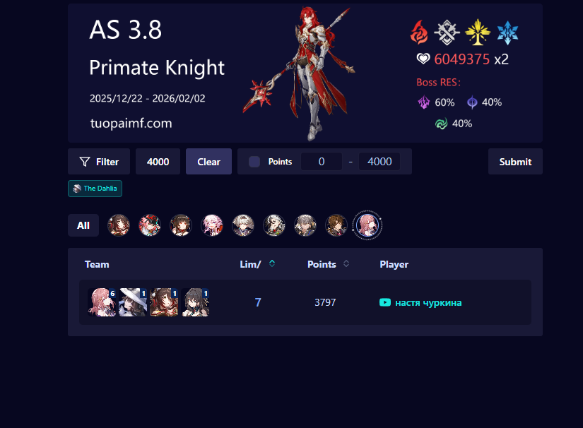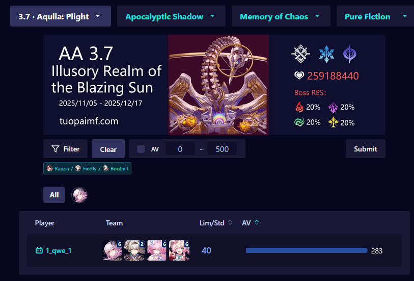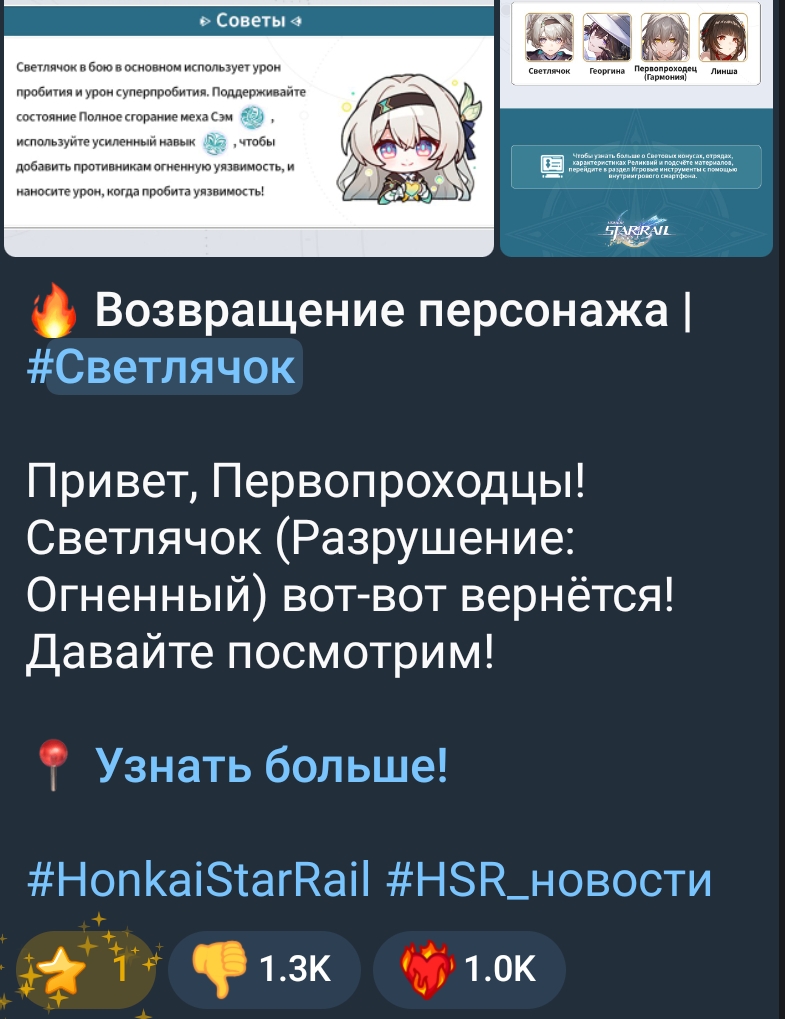 >Светлячок самый популярный персонаж игры с огромным отрывом от всех остальных Почему самый сильный саппорт Светлячка и по сути её личный бафф - самый провальный утренник за год? >Но это старая команда! Как и доты. Как и каждый карнавал Ахерон собирающий 10х от карнавалов Светлячка. Где эта ваша популярность, в чём она выражается? Я вижу лишь короткоживущую мету, форс и забвение.