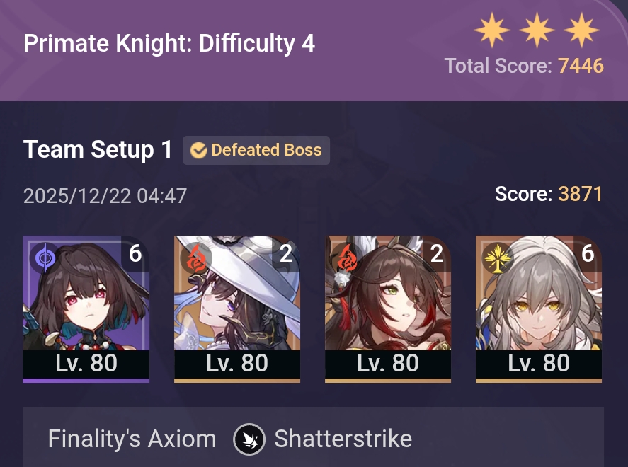 >>6081453 Если бы сказал, что где-то недобрал 1 звезду, я бы мог согласиться. Может чариков не хватить, или статок на реликах. Но вообще не пройти? Тут очень сильный скилл ищью.