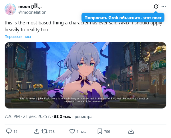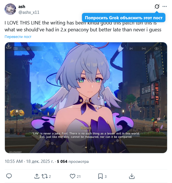 Так шаоджи же ☃️ снеговичок и отличный писатель. Ну да считай расписался что пепекония это высер, который надо перелопачивать. Зато вайфочка главная обозначена, творцу виднее. Проект Элизия-экспресс в надежных руках. Неиронично всё больше проникаюсь светлячком и жду альтер