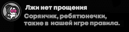 — Теть, скажи, который час, а? — Девятнадцать, без пяти. — Какие у тебя мечи-то! Воидхантерские, что ли? — Так я же Воидхантер. — Да ну! — Чё, не веришь, что ли? Честное слово! — Теть, не в масть тебе такие мечи, давай снимай. — А ты мне Дыньку! Па-а… — Мена? — Мена! — Я тебе дыньку, ты мне мечи! — Пошло! — Держи. Снимай. — А ты чё не в каверне-то? — облил шампанскими, мля! Не видишь, что ли? — Да ну?