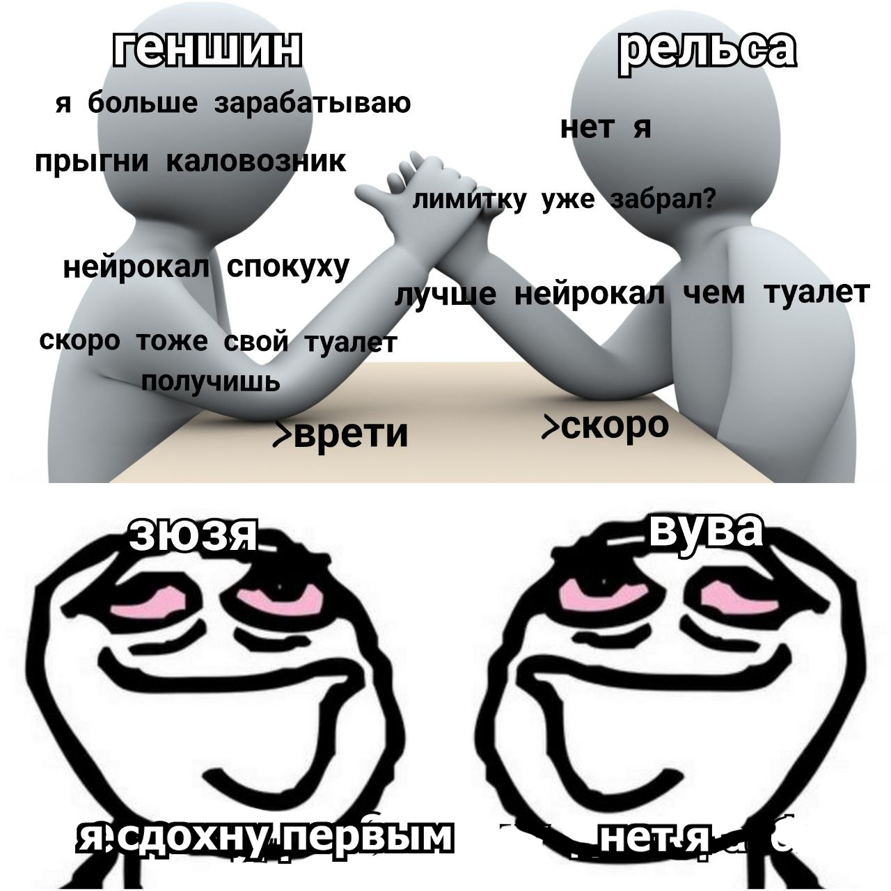 >>6083501 Я видел пару артов, которые кажется шиппят Жужу Фуфу с Тохой А ещё видел арты, где Фуфлыжка мечтает стать крутой и сильной Так она что, ЛОРно закомплексована и довольно-таки лоутаер и только в манямирке видет себя накачанной и крутой?