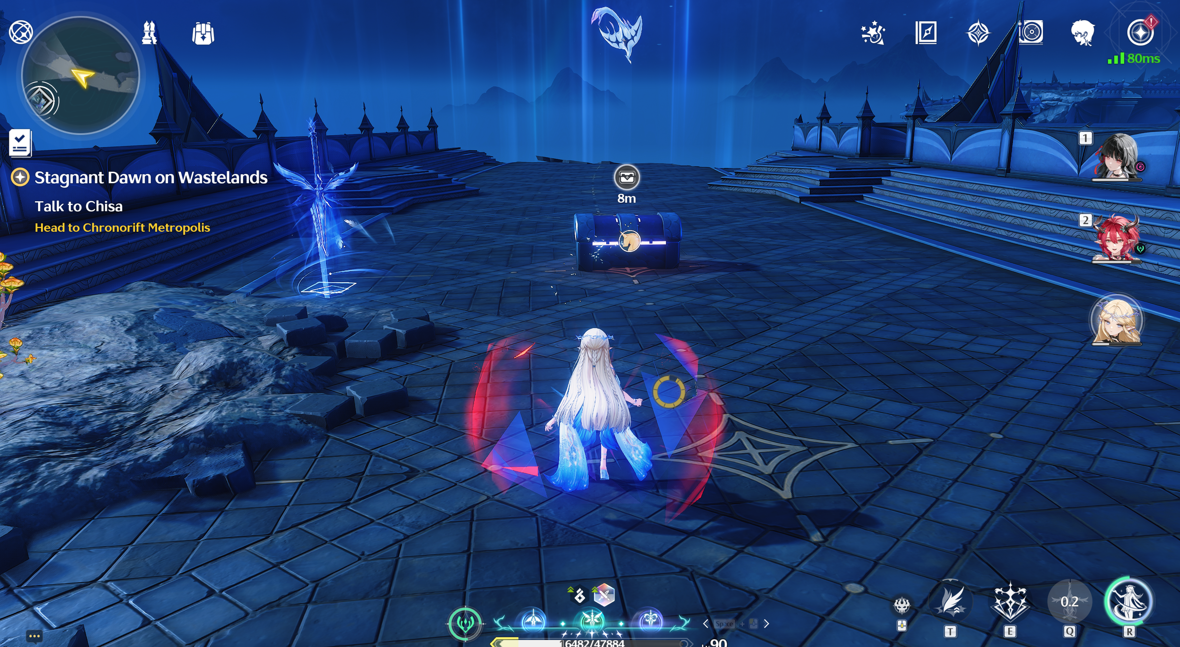 На этом мосте. Сначала встаешь вот где-то сюда (пик 3) Внезапо появляются призрачные стрелки и хуярят тебя электрострелами, нужно пробегать мимо них и уклонятся. Бежишь до места (пик 2) там появляется призрачный дуэлист. Сражаешься с ним, побеждаешь - получаешь сундук.