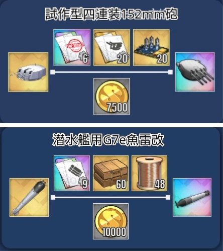 ※New routes added for 【Destroyer Main Guns】, 【Cruiser Main Guns】, 【Battleship Main Guns】, and 【Carrier-based Aircraft】. In addition to existing equipment, the following new equipment has been added: