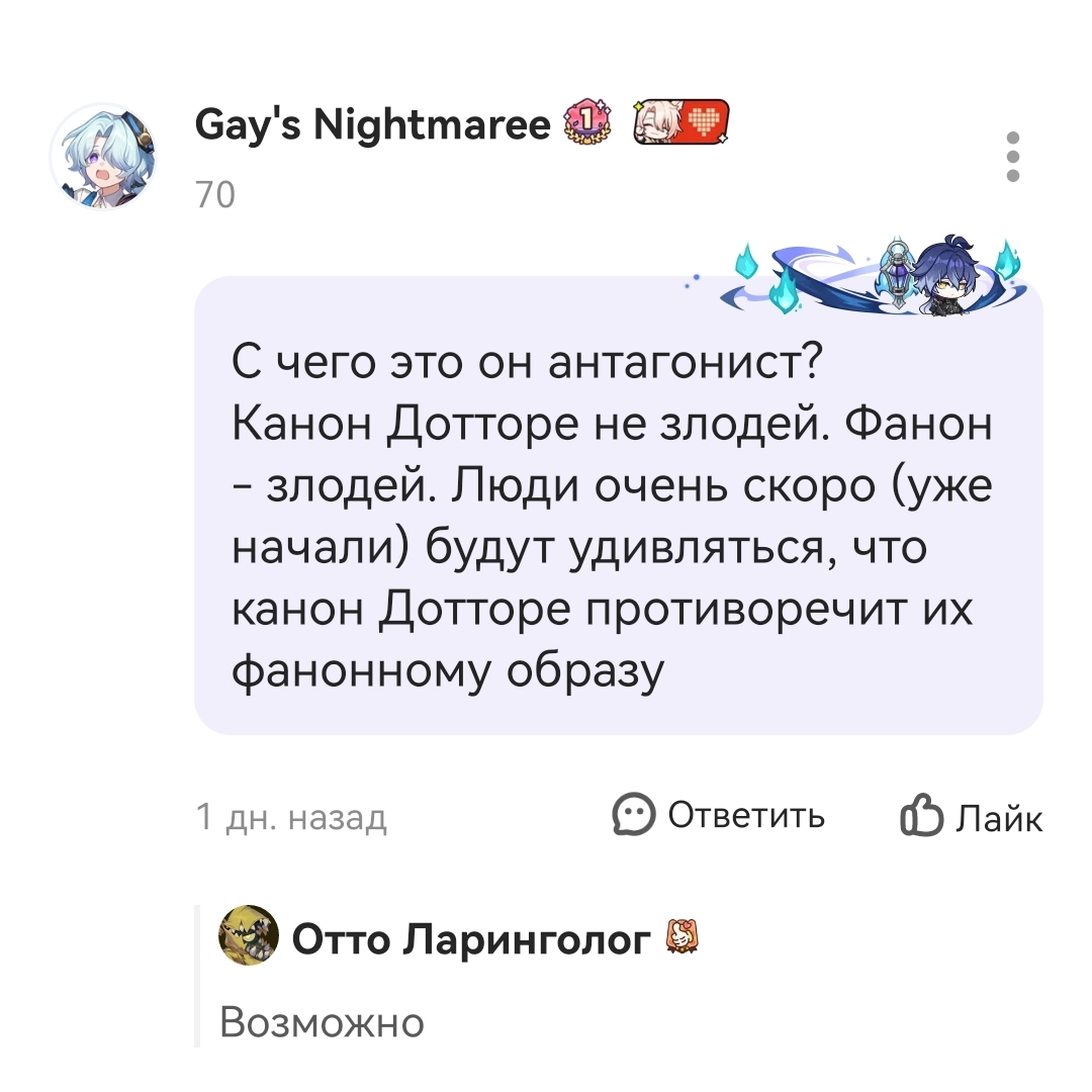>по своей любимой игре гемниш инпакт. Ващ похуй на стрим и спойлеры. И отношения у меня с этой игрой какие-то странные, что даже стыдно. Стыдно потому что Хоровод - это такой бетабакс, на него страчу сотни часов, захожу каждый день, но все равно даже до сих пор не могу сказать что Хоровод даже хоть на каком месте в моем личном топе, потому это не игра даже, тут гулаг и нельзя творить, а какой-нибудь элдерскролс - это ерох, после супружеского обязалова с куколдом Хороводем-Хороводом, сразу бегу и прыгаю на хуй к свитку, хотя он чудо и мудло, багуется, не обновляется десятилетиями и ложит хуй на фанбазу, тоже изменяя с фанатами фолача. То есть логика говорит, что Хоровод у меня должен был стать #1 и единственной игрой, но по факту... Это и есть то самое женское поведение? Как это случилось? Меня не так воспитывали.