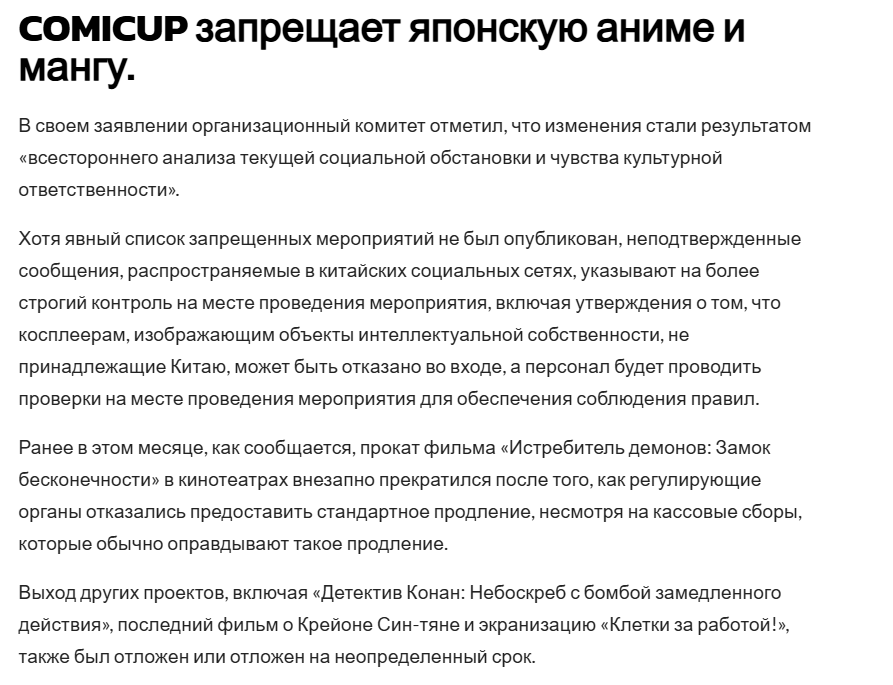 >>6094074 >>6094076 >>6094085 Ну это предположения из обсуждения этой новости, хуй знает откуда они это взяли, но в целом японских артистов и произведения из Китая отменяют.